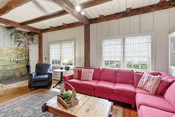 Step into a piece of Amherst history at Green Trim Farm, also known as the Andrew Seaton Farm. This distinctive property blends historic character with quiet beauty, offering a rare opportunity to own a truly special homestead. Set on picturesque land (4.8acres) with classic rural charm, the farmhouse showcases timeless architectural details alongside comfortable and alluring living spaces. Wide plank floors, original woodwork, a beehive oven, and period features reflect its heritage, while thoughtful updates provide everyday functionality and easy living for all ages. UPDATES galore including new Marvin windows, kitchen cabinetry, appliances & surfaces, FHA system, bathrooms, septic & all systems. Enjoy the views of the open fields, mature gardens, sugar & silver maple trees, or the wistful weeping willow.... from the patio, the inground pool, or the firepit in the field. Views that reflect New England living with stone walls and statuesque trees. Create a working farm, a private country retreat, or a place to enjoy outdoor recreation and year-round beauty and peacefulness. The attached heated turnbuckle 1800s barn with hand hewn beams serves as an office, gymnasium, and recreation space, plus has 2-3 car garage. Green Trim Farm is more than a home — it’s a legacy property ready for its next steward. Experience the history, the land, and the lifestyle this remarkable property offers....Move in Ready! Convenient to highways, Manchester Airport, all the area amenities, wonderful schools and Amherst Village events. VISit today....you'll love the HOBBIT play house too! OPEN HOUSE Saturday 25 April 12-2.