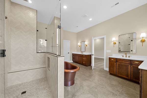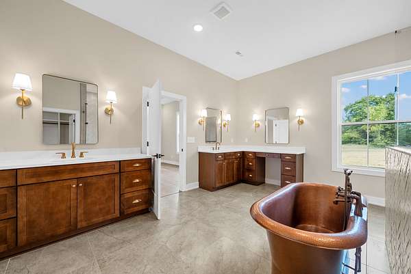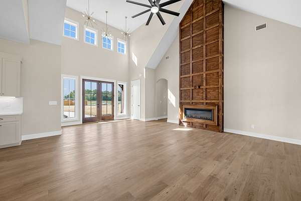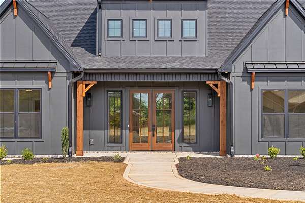 Introducing the Birchwood by Homefront Builders--a seamless blend of luxury and functionality set on a picturesque, tree-lined 1.92-acre lot. This exceptional home features an abundance of windows in the kitchen, flooding the space with natural light, while the elegant French doors in the living room provide breathtaking views of the surrounding landscape. The kitchen is designed for both beauty and practicality, complete with a large island, double ovens, and an expansive walk-in pantry. The primary suite offers dual closets and an ensuite with separate vanities, a tiled shower, and a relaxing soaking tub. Two spacious bedrooms share a thoughtfully designed bathroom with dual sinks, and each has its own walk-in closet. A versatile fourth bedroom can function as an office or additional bedroom, complete with yet another walk-in closet. The home also includes a convenient half bath, a mudroom with a drop station, and a large laundry room with cabinetry and a sink. High-end designer finishes, such as quartz countertops, custom trim, and upgraded cabinetry, elevate every space. An expansive 3-car garage completes the home, ideal for vehicles, extra storage, or a home gym. Builder has other lots and floor plans. Homefront Builders homes are backed by a 10 year structural warranty! Photos are sample photos only, house has not been started yet.