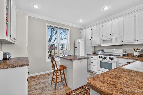 - Bed-Master Main Level, Den/Office, Kitchen Island, Laminate Counters