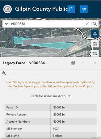 Enjoy Peace And Serenity In Your Quiet Mountain Getaway. The Badger Lode is Secluded, Wooded, and Gently Sloping. Access From Roy Smith Rd South Or North But North Is Easier. Close to Central City, Idaho Springs, Fine Dining, Casinos, Off Roading, ATVing, World Class Skiing, Horseback Riding, Rafting, Rock Climbing & Disc Golf. This is a Perfect Getaway. Easy Access to I-70 Via Central City Parkway. In the Immediate Area Are Remnants of Colorado's Historic 19th Century Gold Rush, Including The Town of Russell Gulch, Pewabic and Bellevue Mountains, and Alps Hill. Mineral Rights are Included. Download a free trial of OnX Hunt to locate property, property lines and corners.