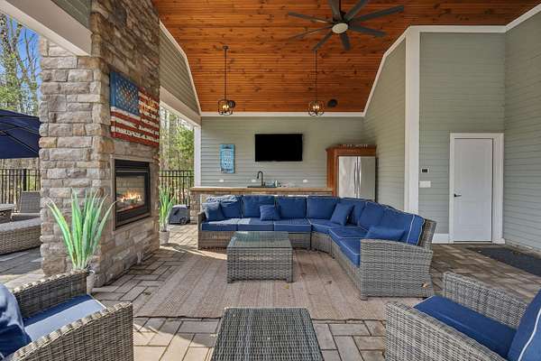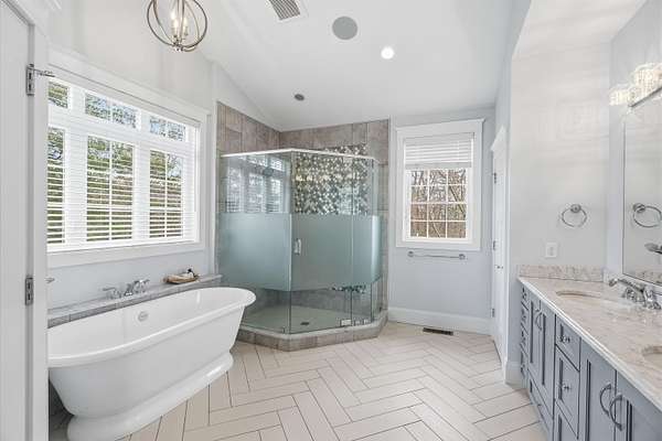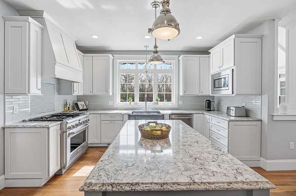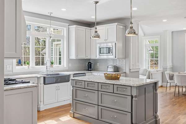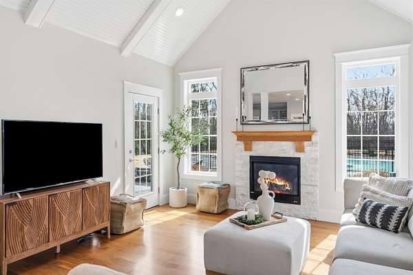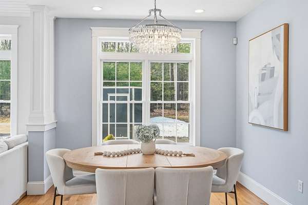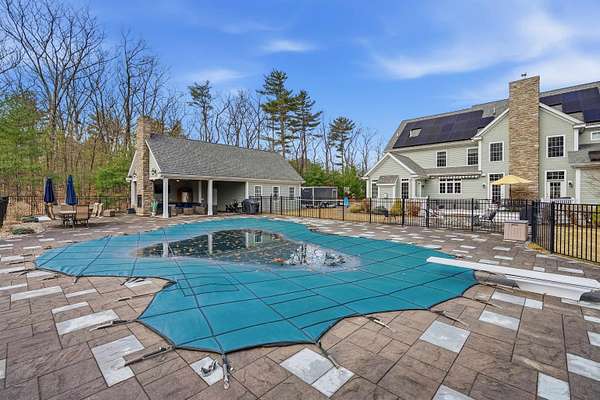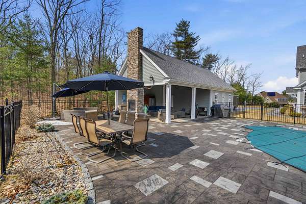 From the inspired vision of its designer, this exquisite custom Colonial, built by DiPietro Homes, is a true statement in craftsmanship, elegance, and timeless design. Architecturally distinctive and thoughtfully curated, this 4,800-square-foot masterpiece was created for luxurious everyday living and effortless entertaining. Set against a private wooded backdrop, the outdoor living experience is nothing short of spectacular. The backyard oasis features a heated pool, firepit, and a beautifully designed cabana complete with a fridge, grill, sink, and bath, anchored by a striking double-sided fireplace—creating the ultimate space for hosting and relaxing. A detached garage stands on its own, adding both function and presence while complementing the estate-like feel of the property. Inside, every detail reflects uncompromising quality, from the soaring 18-foot ceilings and stunning coffered ceiling detail in the great room to the seamless flow that makes this home as functional as it is impressive. At the heart of the home, the designer kitchen opens beautifully to the grand great room, while an inviting keeping room just off the eat-in kitchen offers a cozy fireplace and direct access to the expansive deck—creating the perfect setting for both relaxed mornings and evening entertaining. With five en-suites to include a first-floor en-suite, the layout offers exceptional flexibility for guests, multigenerational living, or evolving lifestyle needs. The primary suite is a private sanctuary, featuring a gorgeous bath, a cozy fireplace, a private hideaway office, and a spacious walk-in closet—designed for both comfort and function. Ideally located just minutes to I-93, shopping, and dining, this exceptional property offers the perfect balance of privacy and convenience while being located just 45 minutes to Boston. Open House Friday, 4/24 4:00 - 6:00 and Sunday 4/25 11:00- 1:00