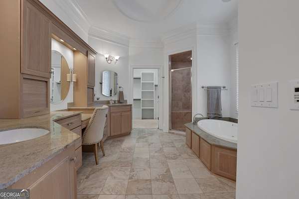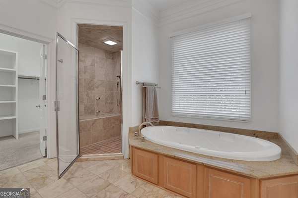 - Bookcases, Double Vanity, In-Law Floorplan, Master On Main Level, Sauna, Walk-In Closet(s), Wet Bar