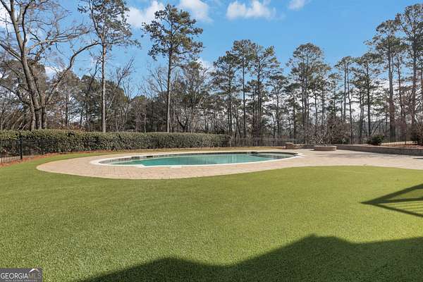 Welcome to this stunning custom-built estate located in the prestigious Horseleg Plantation, offering over 6,500 square feet of thoughtfully designed living space on more than eight private, wooded acres. This exceptional home blends elegance, functionality, and resort-style amenities in one of Rome's most desirable locations. The main level features a spacious open-concept kitchen that flows seamlessly into a vaulted den and a bay-window breakfast area, creating an ideal setting for both everyday living and entertaining. A formal dining room, grand foyer, and formal living room with soaring ceilings enhance the home's impressive presence. The main-level primary suite is a true retreat, complete with a private sitting area, fireplace, wet bar, oversized spa-like bathroom with heated floors and an expansive walk-in closet. Also on the main level is a private study with built-in bookshelves, vaulted ceilings, and direct access to a private patio. Upstairs, three generously sized bedrooms, two full bathrooms, and a large open den overlooking the living area below provide flexible space for family and guests. The fully finished basement offers a separate living environment with its own ramped entrance and stair lift, making it ideal for multigenerational living or extended guests. This level includes one bedroom, one ADA-accessible bathroom, a full kitchen, laundry area, home theater, sauna, full bar, abundant storage, and comfortable living space. Outdoors, enjoy a private backyard oasis featuring a heated, resort-style saltwater pool, expansive patio, and a brand-new outdoor kitchen-perfect for year-round entertaining. Located near Lawrence Preserve at Horseleg Creek, the home also offers convenient access to tennis and pickleball courts, swimming facilities, and event venues with scenic views, while still maintaining exceptional privacy. A rare opportunity to own a truly one-of-a-kind estate in an exceptional location.