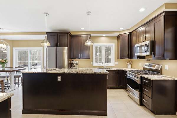 Welcome home to this beautifully maintained 4-bedroom, 2.5-bath young colonial nestled in a desirable Derry neighborhood. Offering three levels of thoughtfully designed living space, this home blends comfort, elegance, and modern efficiency. Level 1 features a generous granite/stainless kitchen, formal dining room, fireplaced living room, grand family room complete with cathedral ceilings & loads of natural sunlight and a half bath with laundry. Second level offers a spacious primary suite with full modern bath, gas fireplace and generous walk-in closet as well as three sizable bedrooms and full tiled bath. Need more space? The finished third level adds exceptional versatility--perfect for a recreation room, media space, gym or home office. Additional amenities include, 2 car garage with EV charger, stunning hickory flooring throughout, generator and central air (both condensers <5 years old). Additional updates enhance comfort and peace of mind, including : 2 forced air heating systems (1 new Bosch high efficiency/1 original) roof heat coils for ice dam prevention, irrigation system, 28 x13' Trex deck (2017) and HRV (heat recovery ventilator) for improved air quality and energy efficiency. With its desirable location, beautiful architectural details, and extensive amenities, this home offers the perfect balance of style and functionality set on 3+ acres in the highly desirable Pinkerton school district. First showings at open house 2/28 & 3/1