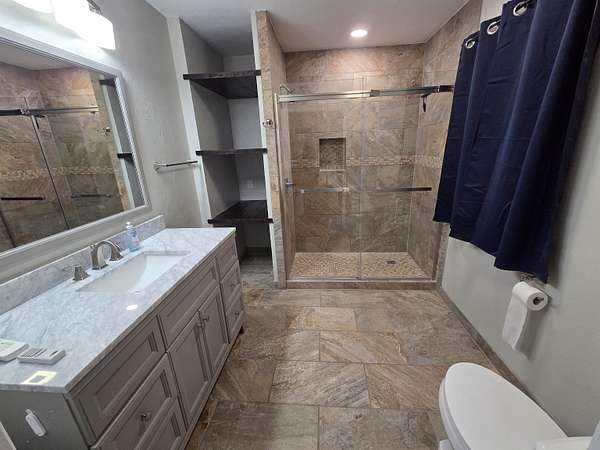 - Carpet, Double Sinks, Eat in Kitchen, Fireplace, Fireplc, Flooring, Handicap Modif., Liv RM, PRTL, Partial, Shower, Slab, Tub & Shower, Wndo CVRNG, Wood Burning