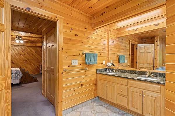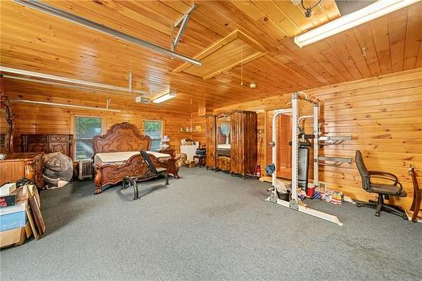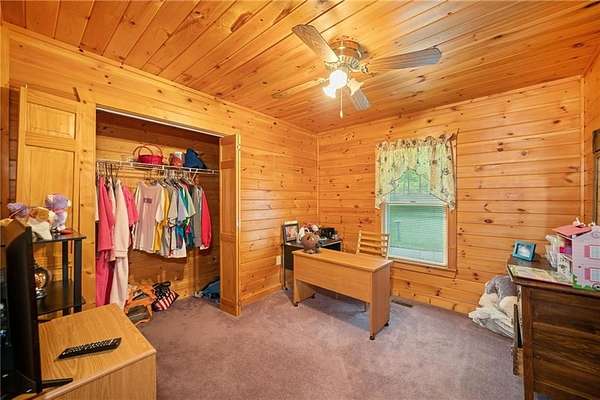 A Charming Mountain Retreat nestled on over 8 acres of pristine North Georgia mountains, this stunning 4-bedroom, 3.5-bathroom cabin offers the perfect blend of rustic and charm. With mountain views from the back deck and complete privacy, this home is an ideal escape from the hustle and bustle. Step inside to find exposed beams and a masonry fireplace that sets center stage! Everything you need is on the main level. The spacious Primary Bedroom features oversized closets, and a luxurious ensuite bath. With 2 secondary bedrooms and a bathroom just down the hall. The open-concept kitchen, living and dining area is perfect for entertaining. Down into the basement you will find a full mother-in-law suite, complete with its own kitchen and separate entrance-ideal for guests or extended family. For car enthusiasts or those in need of ample storage, the property boasts an impressive array of garage space: a main-level two-car garage, a drive-under garage with room for three cars, a detached 5-bay garage, and an additional 2-bay garage with space for six more vehicles. There's even an outdoor storage shed for all your tools and equipment. Surrounded by mature trees and lush landscaping, this property offers tranquility and seclusion. And if you're looking for even more space, there's an option to purchase two adjoining 5-acre lots, bringing the total to a sprawling 18 acres. Don't miss the opportunity to own this exceptional mountain retreat-schedule your showing today!