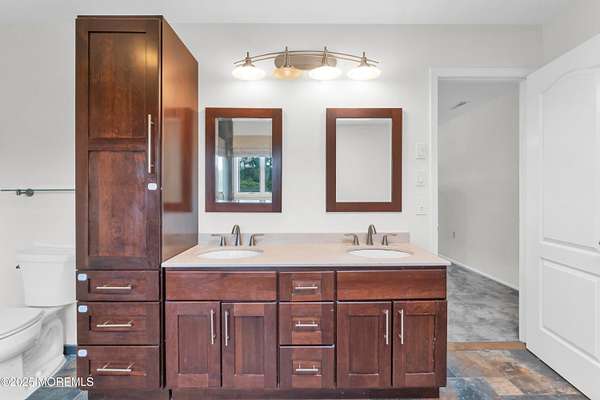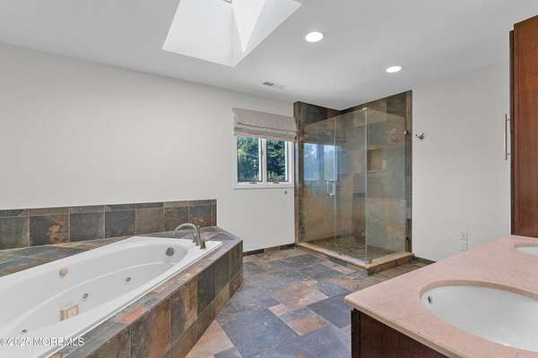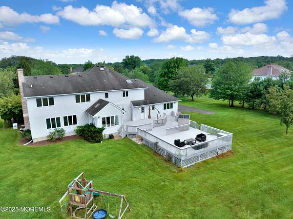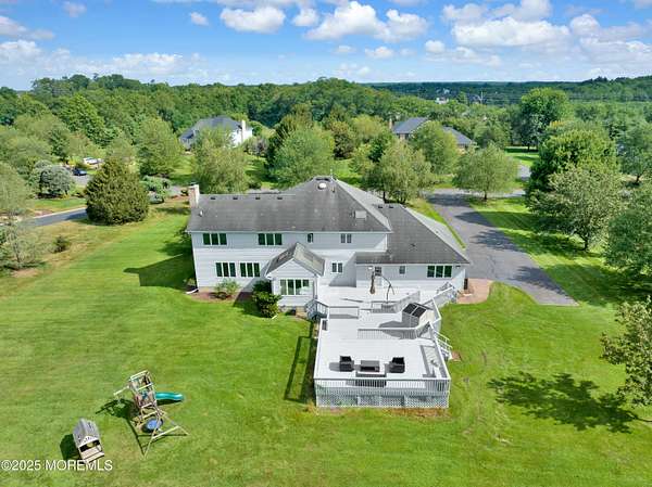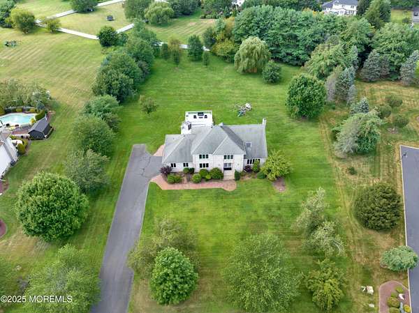 Located in the desirable Elton Point neighborhood, this 3,778 sq ft classic Center Hall Colonial offers plenty of space, comfort, and a great lifestyle opportunity in one of Manalapan's most convenient areas. Enjoy easy access to Routes 9, 18, 33 and 195, making travel to NYC, the Jersey Shore, and surrounding towns simple and stress-free. Everyday conveniences like shopping centers, restaurants, parks, and schools are only minutes away, giving you the best of suburban living with everything close at hand. 5 bedrooms and 3 full baths, giving everyone space to spread out. living and dining rooms with hardwood floors throughout. A roomy 24' x 15' family room with wood-burning fireplace. Bright white kitchen with granite counters, center island with veggie sink, and a sunny breakfast area with cathedral ceiling, skylights, and a wall of windows overlooking the yard. Spacious bedrooms, including a master suite with walk-in and wall closets with organizers. A full basement, ready to be finished for a playroom, gym, or hobby space. Garage comes with a Tesla EV charger and a standup generator outdoor already in place. Set on nearly 1.9 acres with a large level backyard, the property offers plenty of room for recreation or future projects. Imagine setting up a fire pit for cool evenings, or creating your own vegetable garden. With this much open space, there's room for gatherings, play, or simply enjoying the peace and privacy of your own backyard. This home combines a solid floor plan, a convenient location, and a beautiful propertymaking it a great choice for buyers looking to personalize a home and enjoy all that Manalapan has to offer