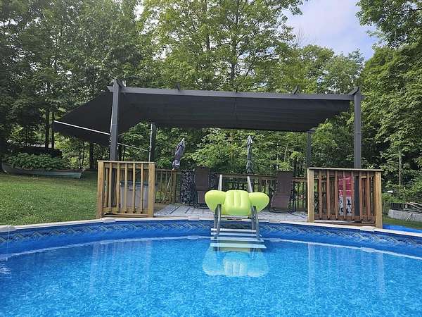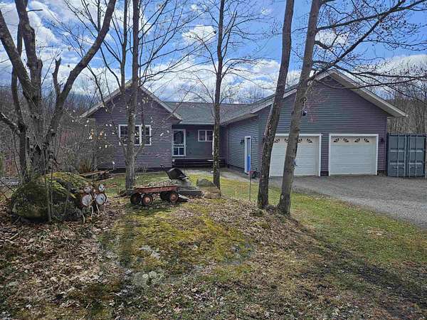Welcome home to this light-filled, single-level retreat on 11.35 acres with a babbling brook and maple trees—perfect for gatherings, bonfires, and outdoor fun. The efficient home offers 3 bedrooms, 3 full baths with radiant heat floors, first-floor laundry, and a recently finished walkout basement with a wood stove and heat pump for heating and A/C. Additional highlights include a spacious two-car garage, ample storage sheds, a large yard with 3 acres of invisible pet fencing offering our friends plenty of room to roam and play, an above-ground pool with a 12x16 deck and arbor. Owners have enjoyed 19 years with no ticks or fleas on their pets. Relax on the main-level deck overlooking the yard, enjoy low electric costs with owned solar panels, Appreciate a peaceful country setting close to schools, amenities, I 89, and Lake Champlain.