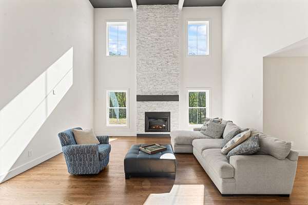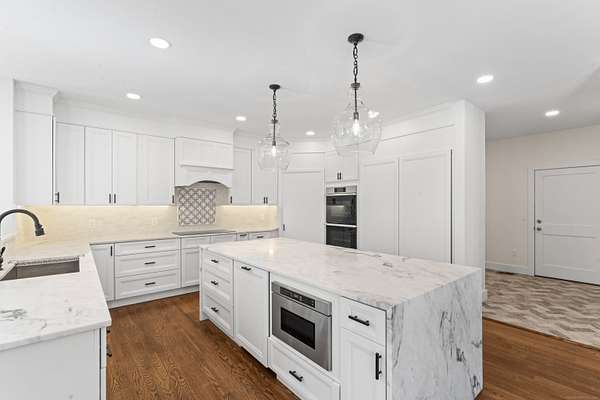 Welcome home to 5 Vona Way, where elegance meets comfort in this exceptional Colonial retreat. Step inside the grand entryway with double circular staircases opening to a breathtaking two-story great room, complete with a fireplace focal point and coffered ceilings. Spanning nearly 5,900 sq. ft. above grade plus just over 2,000 sq. ft. on the finished lower level, this 5-bedroom, 5.5-bath home is designed for both luxury and livability. At the heart of the home, the gourmet chef's kitchen boasts high-end appliances, dual dishwashers, twin beverage centers, a waterfall quartz island, and an oversized walk-in pantry. Hardwood floors and timeless architectural details flow throughout. The grand primary suite offers a private sitting room and dressing area, while upstairs also features an ensuite bedroom and two additional bedrooms with a Jack & Jill bath, all with walk-in closets. A convenient first-floor ensuite bedroom is perfect for guests or extended family. The walk-out lower level is a versatile space, ideal for a gym, wine cellar, home theater, or in-law suite with a full bath. A 5-car garage, including tandem bays, offers plenty of storage and flexibility. Outside, enjoy your own private resort with a heated saltwater pool and custom grotto, the ultimate setting for relaxation and entertaining. Nestled on a quiet cul-de-sac, this home truly has it all.