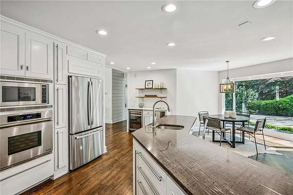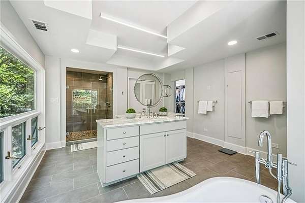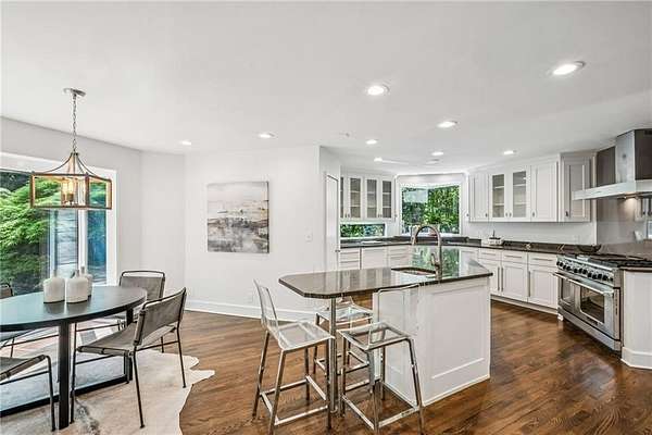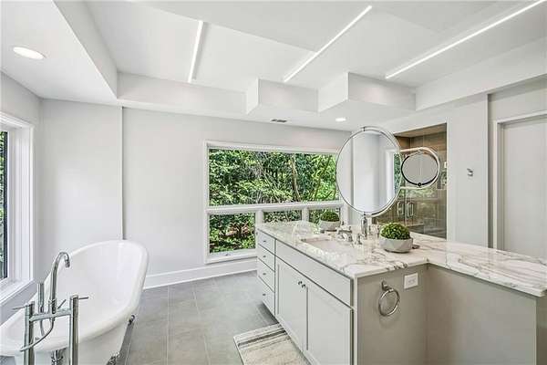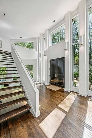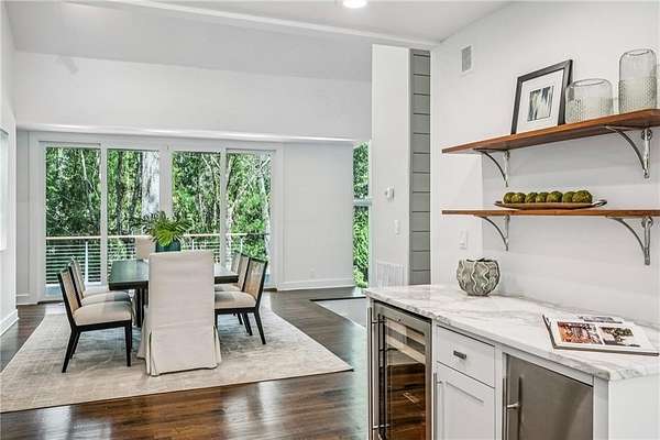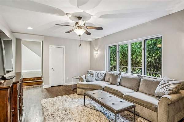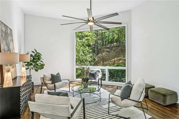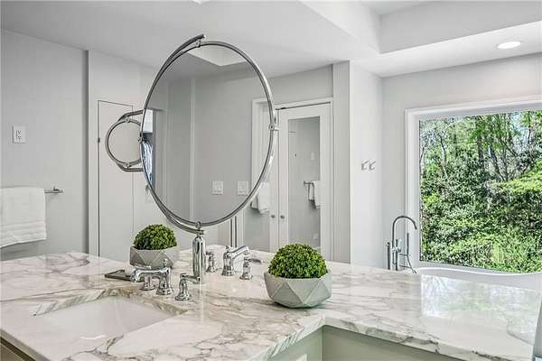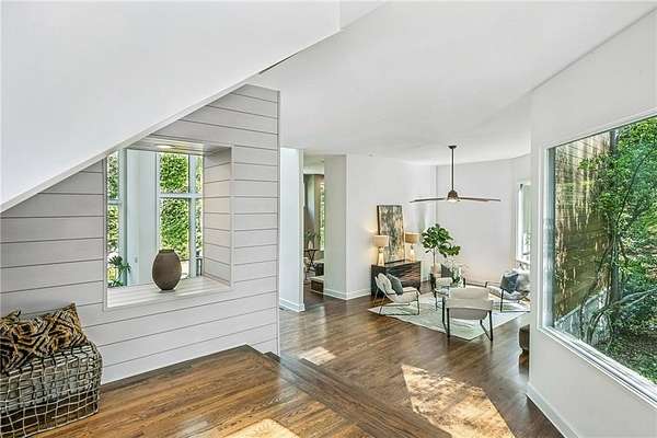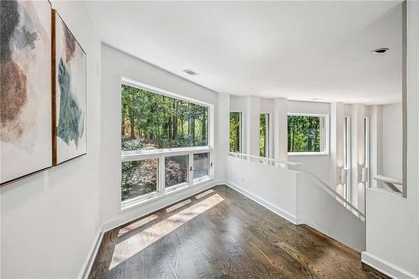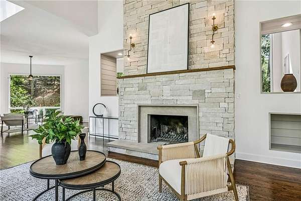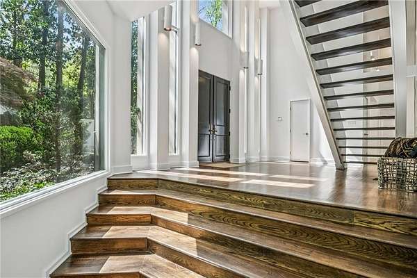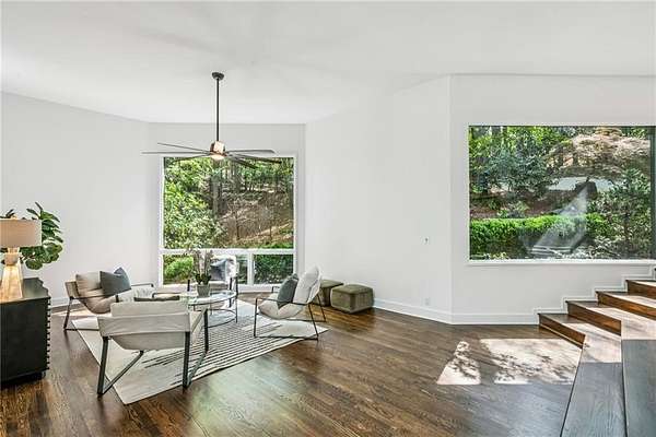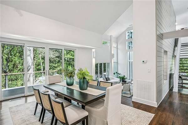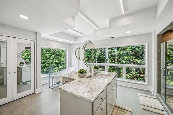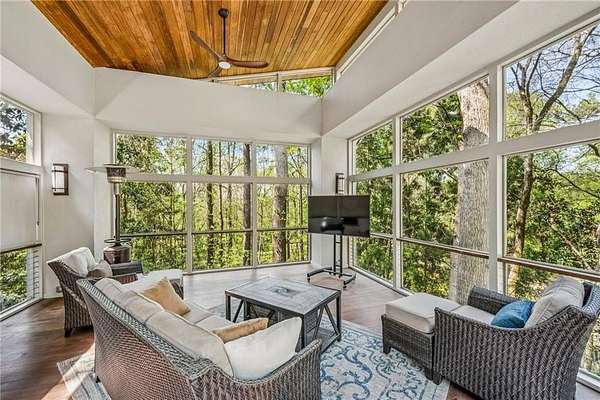 Set on a private gated ridge overlooking the Chattahoochee River, this remarkable Buckhead retreat offers an extraordinary blend of architecture, privacy, and natural beauty across approximately two acres. Originally designed by renowned architect Henri Jova and thoughtfully renovated by K2 Construction, the home preserves its iconic design while incorporating modern comforts and livability. Surrounded by mature trees and tranquil river views, the setting feels like a secluded nature preserve while remaining minutes from the heart of Buckhead. The open, contemporary floor plan is designed for both entertaining and everyday living, featuring multiple living and dining areas, three fireplaces, and walls of windows that frame the stunning natural surroundings. A chef's kitchen with breakfast area flows seamlessly into the main gathering spaces, while expansive outdoor living areas create a true indoor-outdoor lifestyle with the river as a breathtaking backdrop. Whether hosting guests or enjoying quiet mornings, every space is oriented to maximize privacy and views. The oversized primary suite is tucked away for ultimate seclusion and features a spa-inspired marble bath with dual vanities, soaking tub, walk-in shower, and generous closet space. Additional living areas include a finished terrace level offering flexible space for recreation, media, office, or guest accommodations. Hardwood floors, architectural details, and curated finishes throughout further elevate the home's sophisticated yet relaxed feel. Slate roof! Residents also enjoy access to an additional eight acres of HOA-owned riverfront property, enhancing the sense of space and exclusivity. With multiple outdoor terraces, peaceful wooded surroundings, and direct river access, this one-of-a-kind property delivers a resort-style experience in one of Buckhead's most unique and private settings!