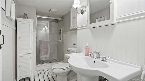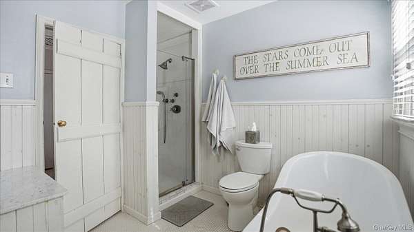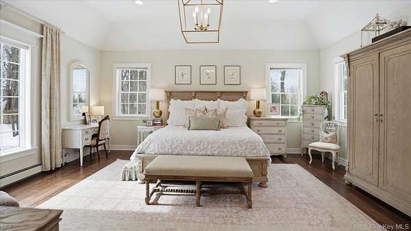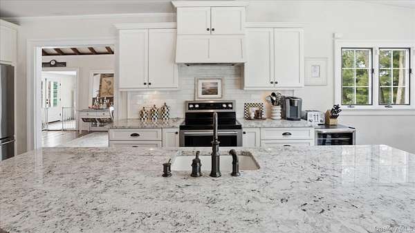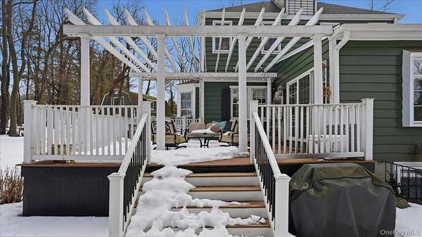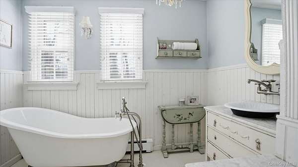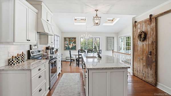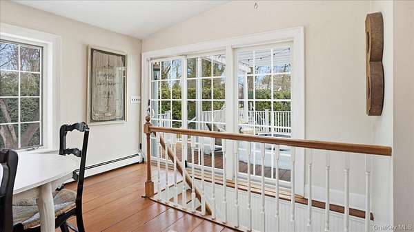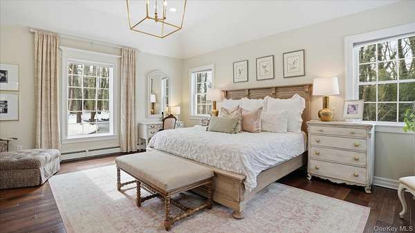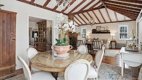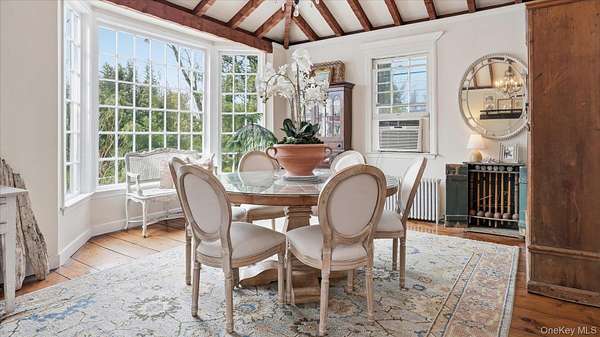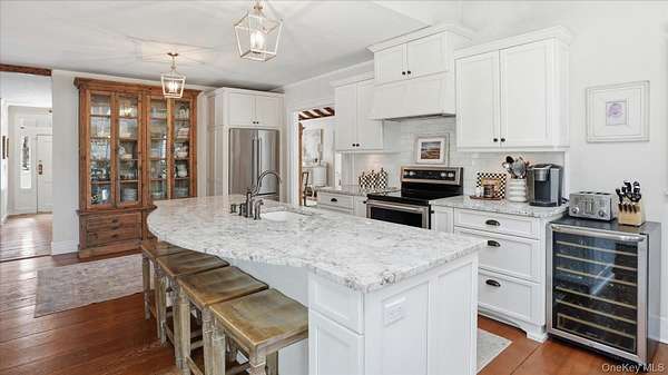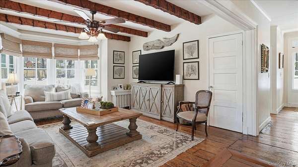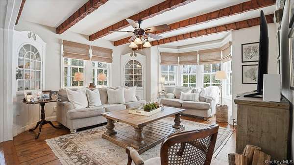 Welcome to the Gray-Storck House, a remarkable historic residence in the heart of Setauket. Originally built in 1862, this stately home sits on nearly two private acres and offers the perfect balance of preserved character and thoughtful, modern renovation, beautifully designed for today's lifestyle. A long, natural drive leads to the landscaped property, complete with a three car, two story plumbed garage and a fenced, heated in-ground pool with a brand new liner. Inside the approximately 4,000 square foot home, you will quickly see why it was selected twice for the Three Village Historical Society's Candlelight House Tour. The main level features an expansive open-concept living and dining space with original hardwood floors, soaring ceilings, and exposed wood beams. Natural light fills the home, creating a warm and inviting atmosphere. The renovated kitchen is centered around an oversized island and appointed with brand new stainless steel KitchenAid appliances and granite countertops. Just beyond the sunroom, the newly added primary suite offers a serene retreat with tall ceilings, abundant natural light, an expansive closet, and a luxurious white marble ensuite bath. A ductless air conditioning unit ensures comfort year-round. An additional bedroom or office and a powder room complete the main floor. Upstairs, you will find three bedrooms and a full bath featuring a classic clawfoot tub and separate large shower. The fully finished basement, with two forms of egress and a full bath, provides flexible space for guests, recreation, work or extended living. Additional recent updates include a new roof and septic system. Just moments away, enjoy beach access and stunning sunsets over Setauket Harbor. Located within the Three Village School District, this exceptional property is conveniently situated between Port Jefferson Village and Ferry to the east and Stony Brook Village and Harbor to the west, with dining, shopping, and scenic attractions throughout. With only a handful of owners in its storied history, the Gray-Storck House is more than a home, it's a legacy, ready to welcome its next chapter.