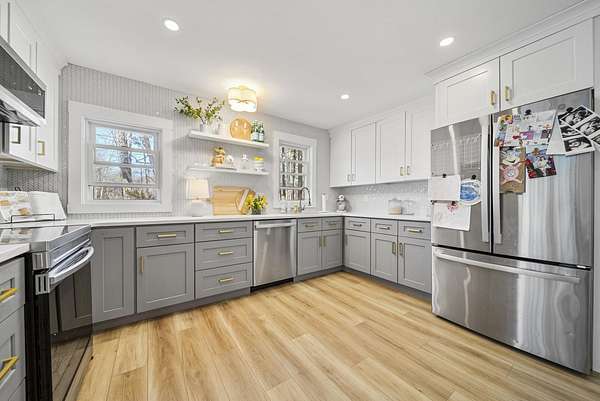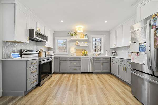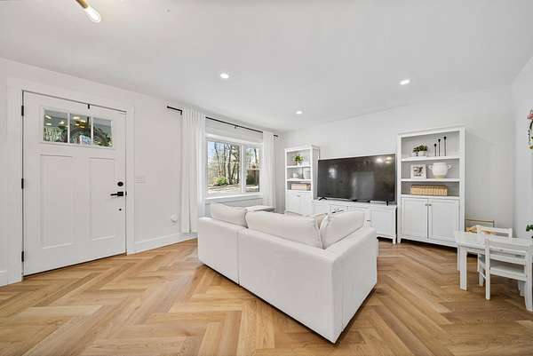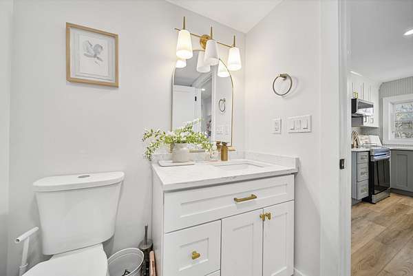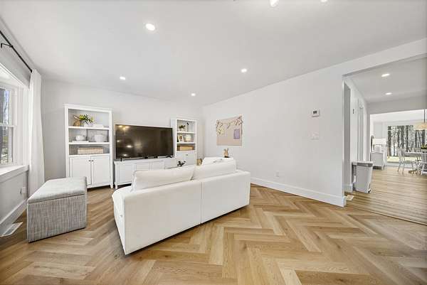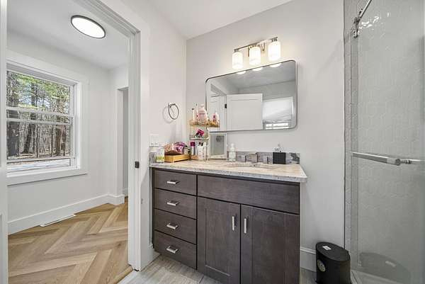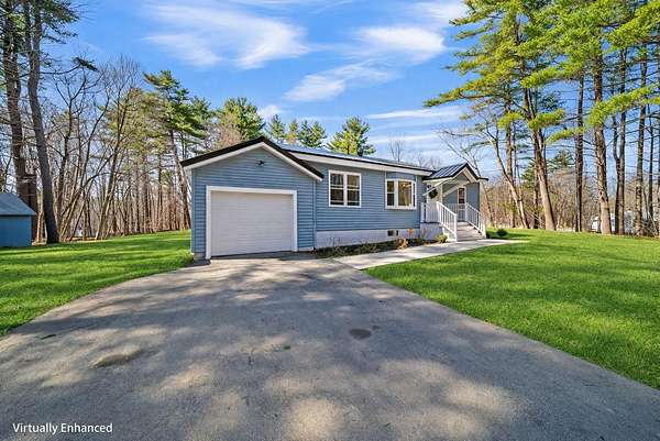 Tucked away on a private, wooded 1.5-acre lot, this beautifully renovated ranch offers the perfect blend of modern updates, functional living space, and peaceful surroundings. Set back from the road and surrounded by mature trees, the property provides a quiet, retreat-like setting while still maintaining convenient access to major routes and local amenities. The main level features a bright, open layout with a fully updated kitchen at the heart of the home, complete with quartz countertops, stainless steel appliances, modern cabinetry, and sleek gold/brass hardware that adds a clean, contemporary touch. The kitchen flows seamlessly into the dining area and living room, creating an ideal setup for both everyday living and entertaining. Durable luxury vinyl plank flooring runs throughout much of the home, offering a cohesive look along with low-maintenance durability. The primary bedroom offers a spacious and comfortable setting, complemented by two additional bedrooms and two updated bathrooms designed for both style and functionality. A walk-up attic provides excellent storage and presents an opportunity for future expansion into additional living space. Additional features include an attached one-car garage, an expansive unfinished basement, and a detached outbuilding, ideal for storage, workshop space, or hobby use. The sprawling yard offers plenty of room to relax, entertain, or simply enjoy the natural setting. Located in the desirable Sanborn Regional School District with easy access to commuting routes including I-495, area amenities, and close proximity to the Massachusetts border, this move-in ready home delivers a rare balance of privacy, updates, and accessibility. See for yourself at the open house this weekend, Saturday 4/11 from 11am–1pm, or schedule your own private showing.