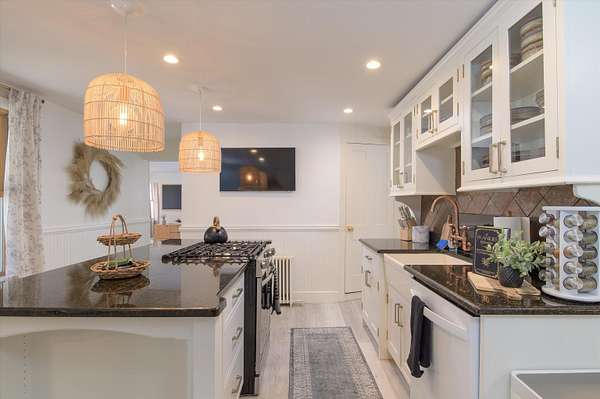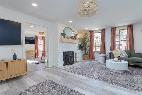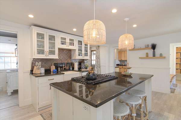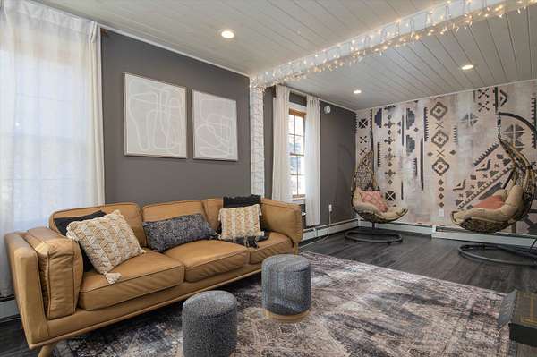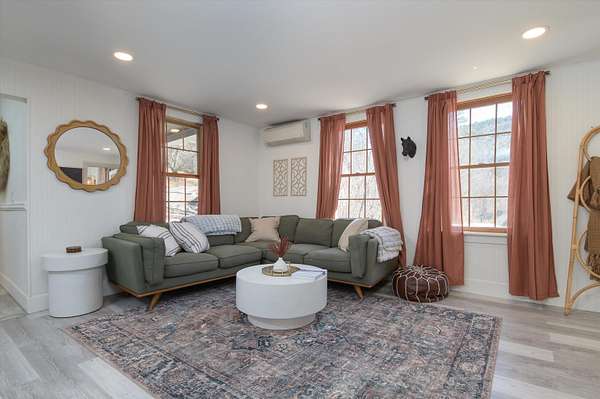 Just a short drive from the slopes of Mount Snow, this beautifully renovated 1800s Vermont farmhouse seamlessly blends historic charm with modern comfort. Situated on 7.5 picturesque acres just beyond the Dover town line in South Newfane, the property offers rolling pasture, classic stone walls, established gardens, and multiple outbuildings, all with easy access to nearby villages, lakes, and year-round recreation. Inside, the chef’s kitchen is both stylish and functional, featuring a farmhouse sink, generous walk-in pantry, and a sunlit eat-in area that opens to a screened porch that's perfect for hosting and relaxing. A formal dining room includes a custom Vermont live-edge farm table (conveying with the sale), while three inviting living spaces provide flexibility and comfort, including a spacious main living room with a wood-burning fireplace and a separate TV room. The home offers versatile living options with several bonus rooms ideal for home offices or guest accommodations, along with a well-appointed mudroom designed for all-season gear and a dedicated laundry room accented with rustic barn board finishes. Bathrooms have been tastefully updated with distinctive details such as tiled showers, glass block, marble countertops, stone vessel sinks, and a soaking tub, each space thoughtfully designed with its own character. Outdoors, enjoy multiple areas for gathering and unwinding, including a patio with an above-ground plunge pool. The expansive land invites exploration, whether snowshoeing or cross-country skiing right from your backyard. Additional highlights include a large antique barn, a detached four-car garage, and a charming studio guest cottage complete with a kitchen and full bath, making it ideal for visitors or potential rental income. This is a rare opportunity to own a distinctive Vermont farmhouse offering privacy, space, and four-season enjoyment, all within minutes of premier skiing and outdoor adventure.