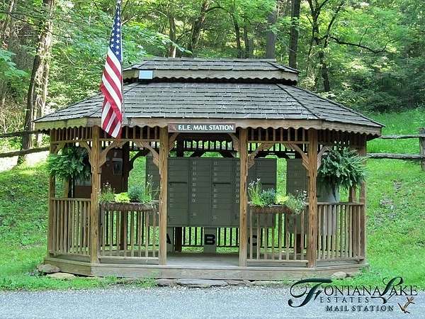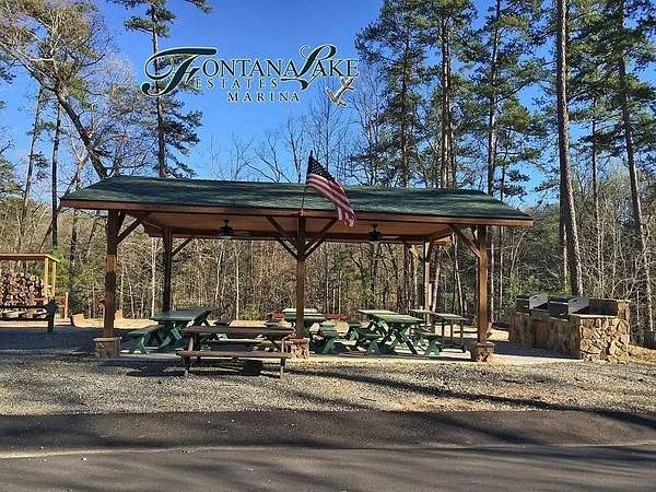Lakefront lot with stunning views of the railroad trestle, the Great Smoky Mountains National Park, and beautiful Fontana Lake. Although this parcel touches the lake with 180 feet of water frontage, it does not have a dock permit at this time. An expired 2-bedroom septic permit is on file. A house site has already been prepared, saving you time and expense. Fontana Lake Estates offers premier amenities including a private marina with boat ramp, dry storage, day-use docks, and lakeside gazebos with swings, picnic area, and grills. Enjoy wooded walking trails with views of the mountains and the lake--the perfect blend of privacy, nature, and recreation.