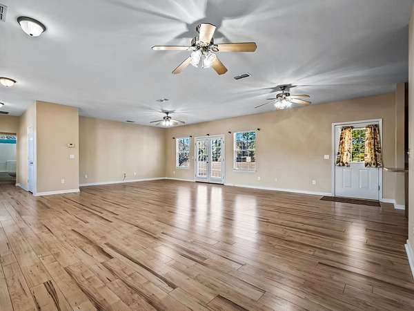 Discover the perfect balance of privacy, comfort, and convenience with this beautifully maintained 3-bedroom, 3-bath home set on nearly 6 acres of serene, lush land just minutes from downtown Crawfordville. Offering 1,772 square feet of thoughtfully designed living space, this property delivers the tranquility of country living while keeping everyday amenities close at hand. Inside, a bright and open floor plan with 9-foot ceilings creates an airy, welcoming atmosphere throughout the living, dining, and kitchen areas. The kitchen has been tastefully updated with brand-new quartz countertops, modern plumbing fixtures, and a new stove-combining style and functionality for both everyday living and entertaining. Step outside and enjoy the peaceful surroundings. Freshly updated front-yard landscaping enhances curb appeal, while a stunning mature oak tree anchors the backyard, providing the perfect setting for relaxing evenings, a fire pit, or gatherings with family and friends. The property offers ample space for gardening with an existing irrigation system and is horse-friendly, making it ideal for those who value room to roam. Additional features include a 2-car carport and a sturdy storage building/workshop for added convenience and versatility. This exceptional property truly offers the best of both worlds-modern updates, abundant outdoor space, and a quiet retreat-just a short drive from shopping, dining, and downtown Crawfordville. Don't miss the opportunity to make this enchanting property your own.