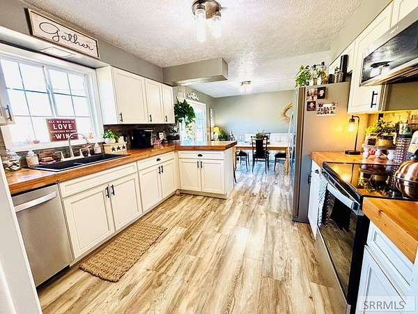 This beautifully updated home offers a perfect blend of comfort, style, and privacy. Fresh paint inside and out complements the new laminate and tile flooring throughout the entire house. The kitchen features brand-new cabinets, countertops, and appliances, while all bathrooms have been completely remodeled for a fresh, modern feel. With 4 bedrooms and 3 bathrooms across 2,600 square feet, the flexible layout allows for a potential fifth bedroom. The basement includes a separate exterior entrance, making it ideal for a mother-in-law suite or rental opportunity. Enjoy the best views in Lemhi County from newly built decks, and appreciate the tranquility of a private drive with no nearby neighbors. The 3-acre property is fenced with new post and pole fencing, perfect for pasture use, and enhanced by mature landscaping that adds charm and shade to this serene retreat.