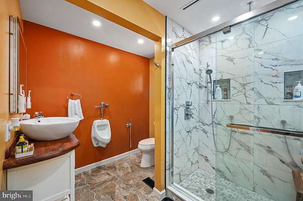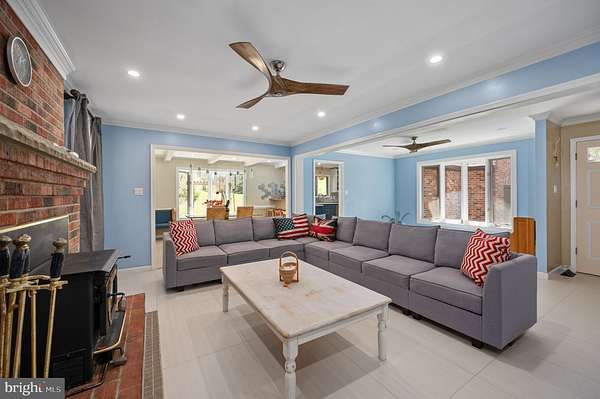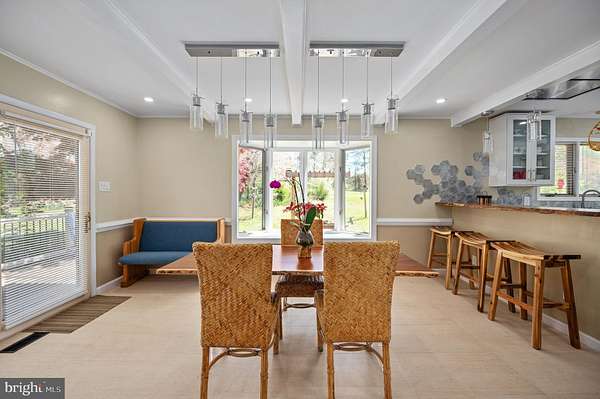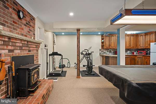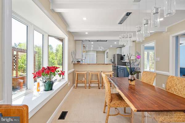- Attic, Breakfast Area, Carpet, Ceiling Fan(s), Chair Railings, Country Kitchen, Crown Moldings, Entry Level Bedroom, Family Room Off Kitchen, Formal/Separate Dining Room, Primary Bath(s), Skylight(s), Stall Shower Bathroom, Traditional Floor Plan, Tub Shower Bathroom, Wet/Dry Bar, Window Treatments, Wood Floors, Wood Stove