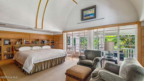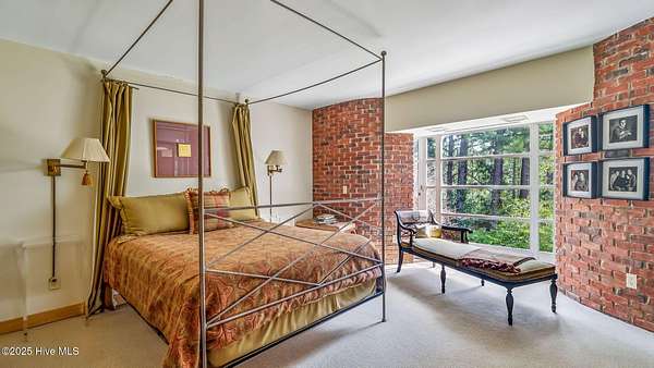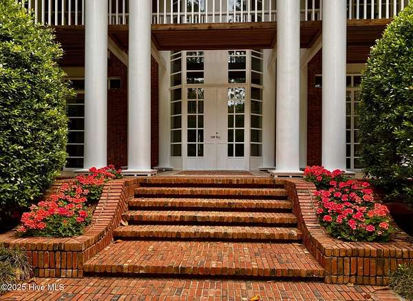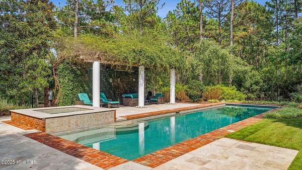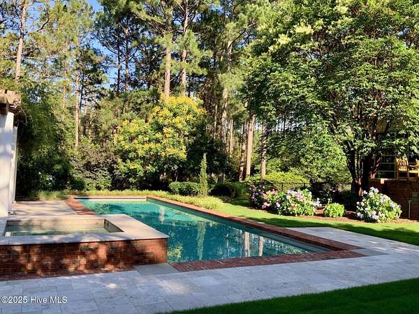 Experience the perfect blend of luxury and privacy in this gorgeous, unique, contemporary home on 5+acres in the Country Club of North Carolina designed by renowned NC modernist architect James Howard Fox. Step into a grand entrance foyer that welcomes you into a thoughtfully designed interior featuring soaring ceilings, elegant architectural details, and an abundance of natural light. The thoughtfully designed main level offers a seamless flow between formal and casual living spaces, including a gracious living room, cozy sitting room, expansive family room overlooking the pool, and an eat-in kitchen, perfect for both everyday living and entertaining. Upstairs, you'll find all bedrooms privately situated, offering comfort and tranquility. Enjoy cozy evenings by one of six fireplaces throughout the home where warmth and ambiance are always close at hand. Step outside to your private oasis featuring a sparkling in-ground pool with hot tub, a charming vine-covered pergola, and a second-floor balcony offering breathtaking views of the property. Whether you're lounging by the pool or hosting under the stars, this home is a true retreat. This one-of-a-kind property combines architectural elegance with exceptional outdoor amenities - a rare find!