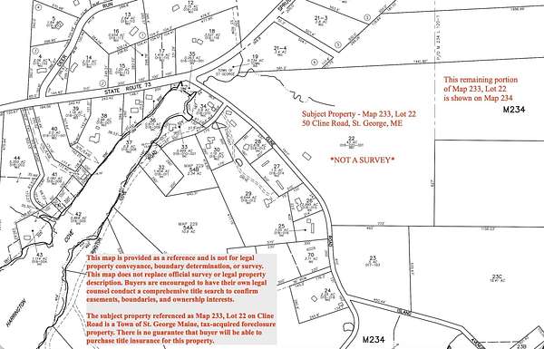 Explore the potential for this Town of St. George, Tax-Acquired Foreclosure Property just 11 miles from Rockland and Port Clyde amenities. Public records indicate that the home was built in 2001 as a 3 bedroom/2 bath home with approximately 1568 sq. ft. of living space but recent confirmation was not possible. Very large, forested lot may include a stream as shown on some but not all maps. Public records indicate that the majority of the +/- 45 acre lot is in the Maine Tree Growth Tax Program. The seller's right, title & interest in the subject property is derived from the municipal tax lien foreclosure process. Seller has never lived at the property and has no knowledge of any conditions of the premises. The premises are sold 'as is where is'. NO SHOWINGS WILL BE HELD AT THIS PROPERTY. PLEASE DO NOT WALK ON THIS PROPERTY AS IT MAY BE OCCUPIED. Property disclosures and some of the publicly available documents are available upon request. Please note that in this online listing information, you will see "none" or "other" for several of the required data fields like heat, heat fuel, hot water and flooring. The information is not available for those features of the home.