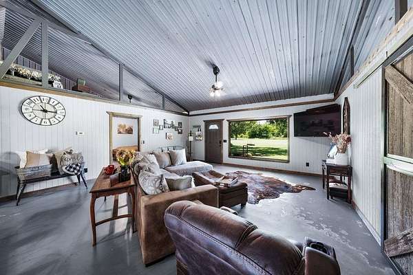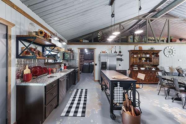 The approximately 1,920 square foot barndominium style residence features two spacious primary suites, each with its own full bath, making it ideal for multi generational living, rental potential, or office conversion. The oversized secondary suite may be reconfigured into multiple bedrooms or professional work areas. Additional highlights include an open concept living area, large walk in pantry, two walk in closets, an oversized laundry room, and a fully floored loft offering potential for additional finished space.