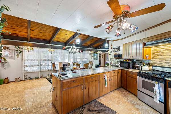 3,597 Sq.ft. 3 BD/2 BA home located in the Alpine Country Club Estates overlooking the No. 9 Fairway and Green on a 1.59 forested acre parcel with mountain views. Features a Living Room/Family Room with a double-sided fireplace with a wood burning insert on one side and a wood burning fireplace on the other side; kitchen/dining room combination; library with a wet-bar area; large recreation/pool table room with fireplace; utility/pantry room. Detached 3 car garage with storage room. Covered front porch; and enjoy the views from the covered back deck.