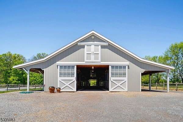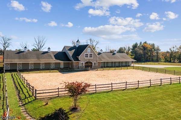 Blackrock Farm is an exceptional country estate offering unparalleled versatility for equestrian enthusiasts and those yearning for an exquisite retreat or entertainment haven. Nestled on 36 acres of preserved land in the heart of Hunterdon County's esteemed horse country, this property seamlessly blends the quiet countryside with modern luxury. Recently enhanced with contemporary updates and featuring a new resort-style pool, Blackrock Farm welcomes you. The sophisticated home spans four levels, offering exquisite millwork, a gourmet kitchen, and a dramatic two-story great room with sweeping pastoral views. A thoughtfully designed first-floor guest wing allows for privacy and comfort, while the finished walkout lower level provides endless possibilities for recreation, fitness, or entertainment. Equestrian amenities include a B&D Builders custom-designed 19-stall partially climate-controlled barn with a tack room, office, bathroom, and two-story center aisle - perfect for events, hobbyists, or car enthusiasts. Lush pastures and a 140' x 90' outdoor arena round out the top-tier amenities. Tucked in the picturesque countryside yet conveniently located between NYC and Philadelphia, you are offered easy access to the charming towns of Lambertville, New Hope, Stockton, and Princeton. Whether you dream of an equestrian lifestyle, a peaceful country retreat, or your ultimate weekend getaway, Blackrock Farm offers an exceptional opportunity to live your dream.