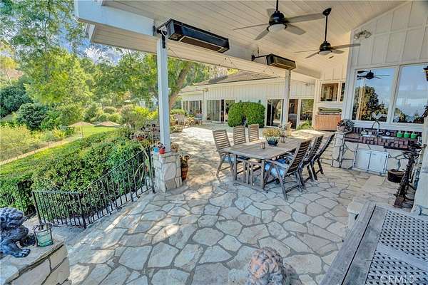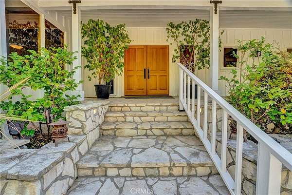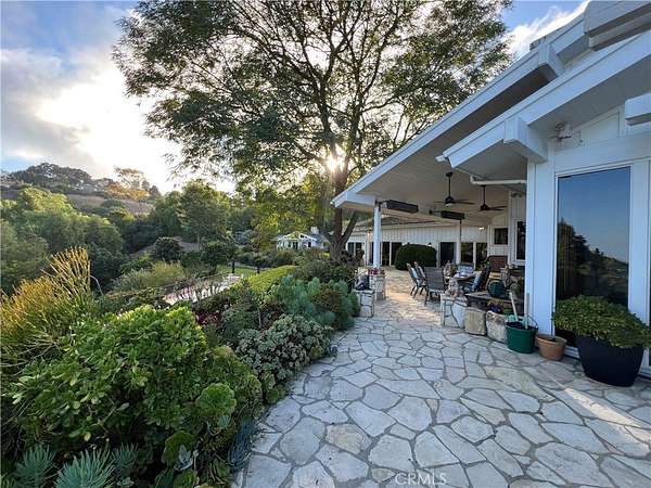 Modern Ranch Home Built in 1999 by the current owners from the ground up. This home has all of the space and amenities anyone could want! With privacy and views of the Harbor Breakwater and Ocean, Long Beach City Lights and Coastline to the south, one will see glorious sunrises. With 1.7 acres of usable land, this home features a private guest house (fully equipped with a cozy fireplace, separate bedroom, bathroom and laundry), bocce ball court, swimming pool with spa, gardens and paths, orchard and grassy yard and the potential to build a barn. With over 6000 sgft of outside patios and porches that overlook the views and grounds, visitors are drawn outside through large glass walls of windows, to enjoy the serenity of mature trees and landscaping. Enter through a covered veranda and you are greeted with warm wood flooring and ceilings and neutral colors that were inspired by a love of Big Sur. Inside you will find gracious open entertaining spaces with large stone fireplaces. The kitchen is in the heart of the home and accesses both the Living, Dining and Family rooms (with a wet bar and pool table). There is a large library with walls of woodwork shelves and a fireplace to relax in front of and read. The primary bedroom overlooks the views with a large bathroom featuring his and hers closets, dual vanities, soaking tub and skylights. Down a hand crafted spiral staircase, there is a finished basement ready to customize a wine room and media room. Enjoy the existing mirrored exercise room already to go. There is also a pool bathroom that leads out to the spa and pool. There is a workshop next to the oversized three car garages. Community schools are excellent and within the Equestrian inspired City of Rolling Hills are 26 miles of trails, two riding rings and tennis and pickleball courts. With 3 separate 24/7 attended gates, Rolling Hills offers less traffic while enjoying incredible views and a rural lifestyle. Easy access to all other Southbay and Los Angeles cities for dining and beaches. The Palos Verdes Peninsula also offers local shopping and dining options and incredible parks and vistas.