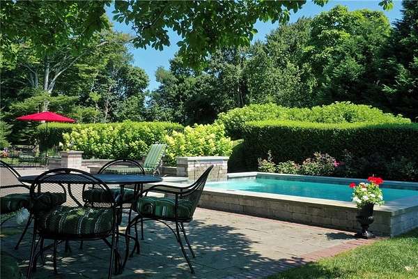 Eastover - Iconic Irving Gill Estate with Stunning Water Views. Presenting Eastover, a rare architectural gem by Irving Gill, c.1902, on 3 acres of refined gardens with specimen trees and water views, "COMPLETE WITH A 1.5 ACRE SEPARATELY DEEDED BUILDABLE LOT"-a rare combination of historic significance and exceptional value. The residence is masterfully preserved and tastefully modernized, featuring custom millwork, state-of-the-art systems, and tranquil outdoor living areas with plunge pool, gardens, and outdoor kitchen. The adjacent buildable parcel has lovely water views as well, and would be ideal for a guest residence, multi-generational compound, or long-term investment. Located in one of Rhode Island's most sought-after coastal corridors this private, peaceful residence is just minutes from Newport's famed beaches and culture and perfectly situated for easy access to Boston and Providence.