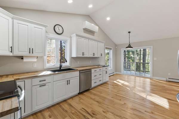 Welcome to a tranquil retreat on the shores of Lake Arrowhead, nestled on 1.85 acres of peaceful, wooded land. This inviting home features three bedrooms and two full baths, combining comfort and simplicity with a lakeside lifestyle. Inside, you'll be welcomed by a living room warmed by a traditional wood stove, perfect for those crisp Maine evenings. Large windows draw in natural light and views of the surrounding trees, while a seamless flow leads to the outdoors. Step onto the generous deck where morning coffee and sunset cocktails both feel right at home. The deck offers stunning views of the lake and the backyard's natural landscape, setting the tone for quiet reflection or easy-going entertaining. Below, the daylight basement presents a bright and expansive space with tall ceilings and ample windowsaEUR"ideal for a workshop, creative studio, or the future possibility of an extra living area. A spacious two-car garage rounds out the convenience. Outside, the property continues to impress. Relax in a wood-fired hot tub beside the lake as the sounds of nature wash over you. From your private dock, launch a canoe or kayak and glide across calm water while enjoying the company of deer, birds, and other wildlife. This home has it allaEUR"privacy, lake-front access, flexible indoor space, and an atmosphere of serene escape. Whether you envision weekend getaways or full-time lakeside living, this property delivers a rare combination of comfort, nature, and possibility. As part of the Lake Arrowhead Community, homeowners have access to two clubhouses. Clubhouse 1 is located in Limerick and has an indoor pool, and a gym which includes a weight room and a cardio room. Clubhouse 2 is located in North Waterboro and has an indoor pool, an outdoor pool, a ping pong table, a pool table, an air hockey table and a meeting room, which members can rent for parties, etc.