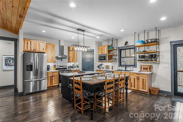 Enjoy long-range mountain views from this private retreat situated on just over 5 acres with a creek, wildlife, and established berry bushes, located just minutes from Lake James and town. This 4 bedroom home offers comfortable main-level living plus a finished basement with private entry, making it ideal for a second living space, guest suite, or entertaining area. Outdoor living shines with covered front and back porches and a beautiful fire pit area, perfect for relaxing and taking in the peaceful surroundings. The property also features a large 30x60 shop with power and water, offering excellent space for vehicles, hobbies, or storage. Inside you'll find gas logs with a custom pecan mantle crafted by Oak Hill Iron Works, adding warmth and character to the living space. Located on a private setting with NO HOA or city taxes, this property offers both peace and convenience just minutes from Lake James.