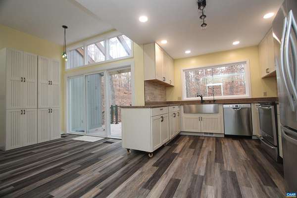 Tucked away on 2.4 private acres beside the Ivy Creek Natural Area, this 5-bedroom, 3.5-bath home offers the perfect blend of comfort and quiet natural surroundings. Heart-pine hardwood floors lead you through a sunlit main level with a cozy wood-burning fireplace and forest views from every room. Relax or entertain on the wraparound Trex deck, accessible from the updated kitchen (2017). The versatile lower level includes a generous family room, bedroom, full bath, office space, and workshop. With the convenience of being near the Shops at Stonefield, Whole Foods, and UVA, you don't want to miss this fantastic home.