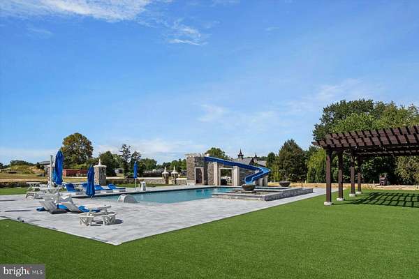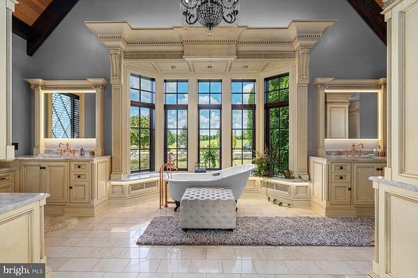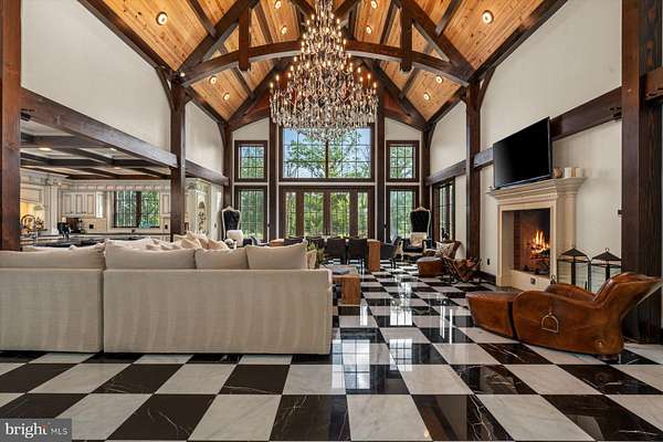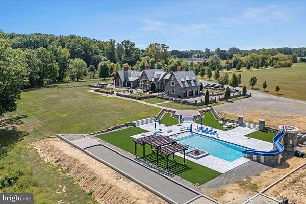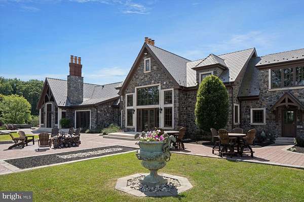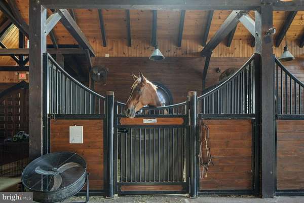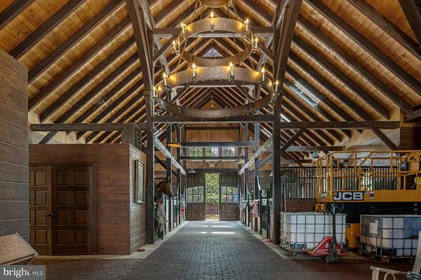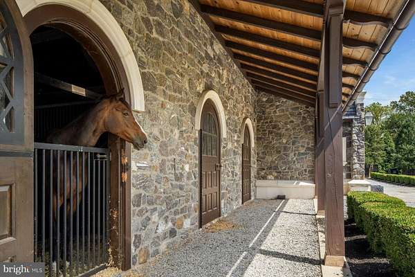 Welcome to a one-of-a-kind equestrian estate that blends privacy, beauty, and world-class amenities across approximately 60 pristine acres. Whether you envision it as a private family retreat, a working equestrian estate, or a stunning country escape, this property delivers on every level. From the moment you arrive through the grand gated entrance, you'll know you've entered a retreat unlike any other. Meander down a treelined drive to a stunning residence, where craftsmanship, comfort, and eco-friendly living come together. This custom-built stone and timber frame home, designed with sustainable SIP construction, is not only elegant but efficient, and thoughtfully designed to keep utility costs low without ever compromising on style. A gorgeous entrance invites you into a spectacular great room with a soaring cathedral ceiling, exposed beams, Italian marble floors and a handsome woodburning fireplace. The open floor plan flows into a magnificent kitchen, custom cabinetry, granite countertops, outfitted with professional-grade Wolf appliances, two dishwashers, pullout refrigerators and freezers, warming drawer, induction cooktop, double oven with 6-burner range w/ griddle, butler's pantry and walk-in pantry. The perfect blend of beauty and function. Tucked away on the first floor is a dedicated wing for the primary bedroom suite with a woodburning fireplace, a custom walk-in closet, a luxurious spa-like bathroom with antique soaking tub, walk-in shower with jets, steam and tanning feature. A spacious sitting room with cathedral ceiling, stone woodburning fireplace, amazing natural light with elegant doors accessible to a private outdoor oasis w/ a covered pergola and a Michael Phelps swim spa. Also conveniently located on the main level, you will find a wet bar, den w/ fireplace, a full bathroom and access to a temperature controlled oversized 3-car garage w/ catering kitchen w/ a Sub-Zero refrigerator, ice machine and two convection ovens. An elevator takes you to a private & secure upper-level w/ an office and cozy den. The elevator also provides access to the lower level with a custom wet bar, powder room, 2nd laundry room and incredible storage. The secondary bedrooms are located at the opposite end of the home on the 2nd level. This wing includes a family room, 3 en suite bedrooms and laundry. The home offers the perfect integration of indoor and outdoor spaces with multiple access points to the extensive, wraparound brick paver patio, which is perfect for relaxation and entertainment. The resort-style pool complex boasts a saltwater heated pool w/ waterfall feature, sun shelf, spacious hot tub, custom slide and infrastructure for a future pool house and bocce ball court. World-class equestrian facilities include a European-style barn, custom-built by B&D Builders with 10-stalls (12'x12') w/ automatic Nelson waterers, two oversized indoor wash stalls w/ hot & cold water, radiant heated floors, dual coal-fired blowers & two outdoor wash stalls. Additional amenities include a large storage rm, laundry rm and tack rm w/ 10 lockers. Barn includes a 3-bedroom apartment w/ a living rm & full kitchen w/ Sub-Zero appliances. Perfect for staff/guests. Directly adjacent is a spectacular 80' x 180' indoor arena w/ oversized garage-style doors with GTT fiber footing. Attached to the arena is a heated 8-car garage w/ high ceilings. Perfect for equipment, vehicles or workshop. Two shed rows; a 4-stall (12'x12') w/ a tack rm & a 5-stall shed row, both w/ Dutch doors and windows. Two beautiful outdoor sand arenas. 200' x 200', ideal for jump course or flatwork and 180' x 200', perfect for dressage or versatility work. Two 40' x 40' stallion paddocks, six additional paddocks w/ 12' x 12' run-in sheds. Each paddock equipped w/ Nelson heated waterers. Additional outbuildings: large open pole barn & detached garage/storage shed. The barn is supported by a secondary gated entrance and its own well.