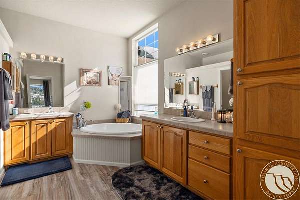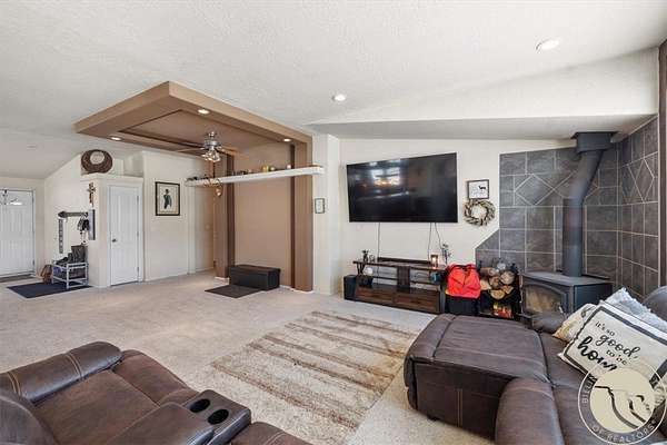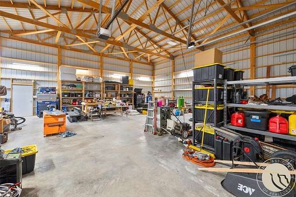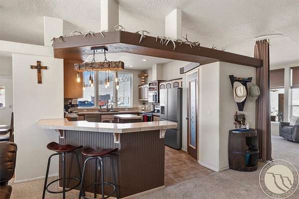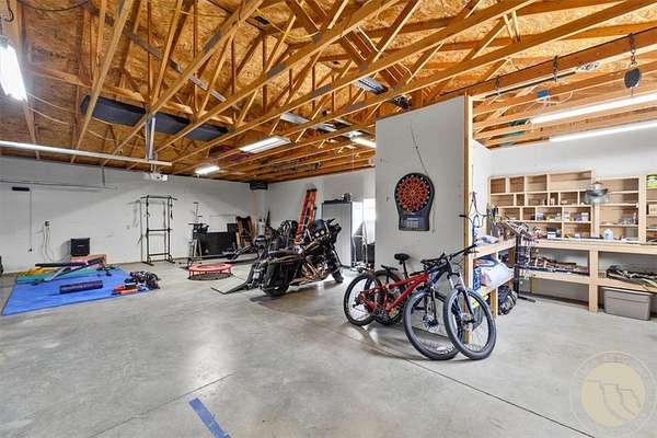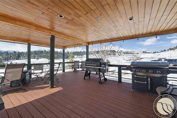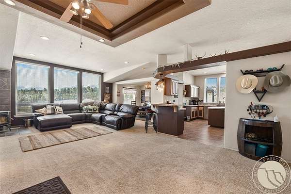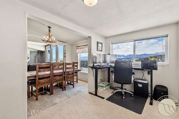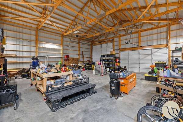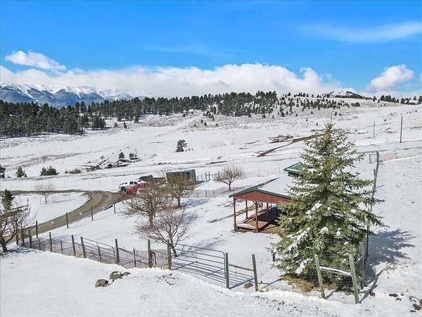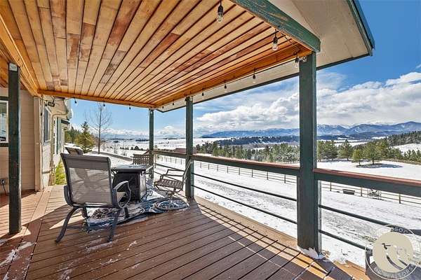 Situated on 10 unrestricted acres with panoramic views of the Beartooth Mountains, this single-level 3 bed/2 bath home offers a practical floor plan and quality throughout. The primary suite includes a private bath with tub and shower. Two additional bedrooms share a full bath. The open kitchen features a large island and pantry, and the family room and home office both have direct views of the Beartooths. The covered composite deck extends the living space outdoors. The property is unrestricted and fenced(4 acres +/-) suitable for horses and livestock. Includes a 40x40 metal shop with two oversized doors (12x14 and 16x9), an attached 3-car garage (38'W x 25'D, 16x8 door), a fenced orchard with mature apple and pear trees, a chicken coop, and a well with cistern.