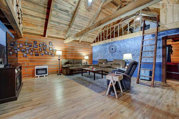 Nestled on 2.5 sprawling acres of pristine wilderness, this enchanting 1-bedroom, 2-bathroom log cabin offers the ultimate riverside lifestyle with breathtaking, views and direct access to the Blue River. The interior radiates rustic warmth, featuring an open-concept living area and two versatile loft rooms that provide ample space for guests, a home office, or a creative retreat. Step outside to find your private sanctuary, where the vast acreage and a functional outbuilding offer endless possibilities for hobbies, storage, or outdoor entertaining. Whether you're launching a kayak from your own shoreline or enjoying the quiet majesty of the water from your porch, this property perfectly blends the cozy charm of an escape with the rare luxury of true waterfront living.