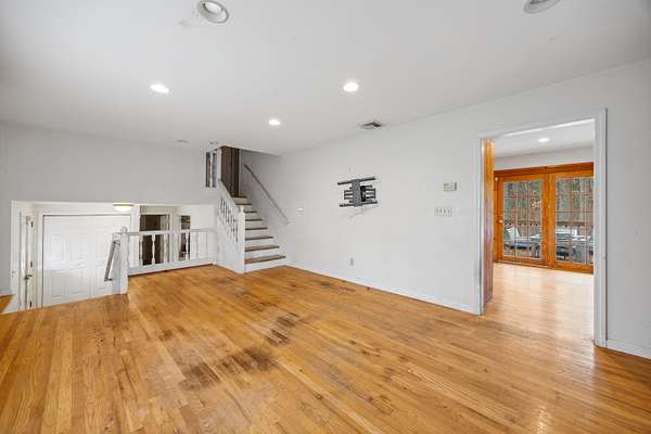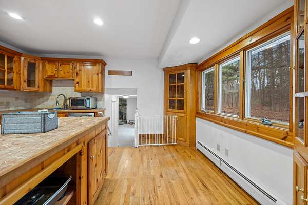 Set your sights on this remarkable find in Farmington's Highlands neighborhood! This 4 bedroom, 2 bath split level home sits on a private 5.98 acre lot at the northernmost cul-de-sac of one of Farmington's most desired communities. Inside, you will find an inviting eat in kitchen with an island, double wall oven, recessed lighting, stainless steel appliances, and french doors all complemented by hardwood floors that run throughout the home. The primary suite offers access to the full hall bathroom with a double vanity, while the remaining bedrooms provide comfortable space for family, guests, or a home office. Additional highlights include solar panels, a generator, and central air. The rec room area features a fireplace, access to a 4th bedroom and full bath, perfect for 1 floor living. The attached two-car garage adds convenient storage and parking. Detached barn and shed provides additional storage and work space. Put your special touch on this home and make it your own. This prime location is just minutes from Farmington Rail Trail, the public library, shopping, recreation, restaurants, and brand new Farmington High School. Buyer to do due diligence if the property can be subdivided.