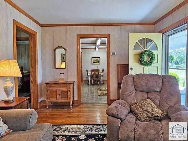 Nestled on approx. 6 peaceful acres, this charming 1950-built home offers a wonderful opportunity to own a true family homestead filled with years of memories. The covered front porch is a great place to sit with some sweet iced tea & enjoy the evening's breeze. With 1,008 sq. ft. of living space, the home features 3 bedrooms, 1 bath, a living room, den, & a spacious kitchen with abundant countertop space & cabinetry-ideal for everyday living & gathering. While the interior reflects its original era & is ready for your personal updates, the home provides a start with practical features, including a dirt cellar that houses the water heater, heating system, well pressure tank, & breaker box. A new septic system installed in 2025 adds peace of mind for years to come. The exterior is low-maintenance with vinyl siding and a durable metal roof, and the expansive yard offers plenty of room to enjoy outdoor living, gardening, or recreation. Several outbuildings on the property provide excellent storage or workshop space. Conveniently located near Blue Ridge Regional Airport and Spencer-Penn Centre, this property combines rural tranquility with accessibility to local amenities. Whether you're looking to restore a beloved home place or create something new, this property offers space, potential, & a setting that's hard to find. Property info per owner &/or assessor. Buyer to verify to their satisfaction. Property SOLD AS IS, seller will not make repairs. Some photos virtually staged.
