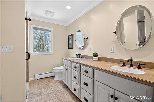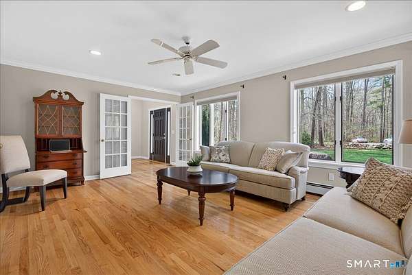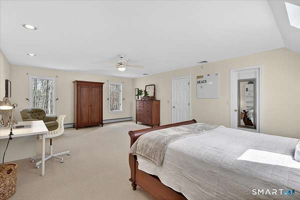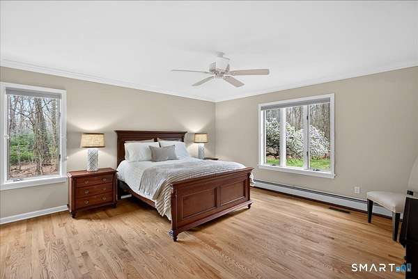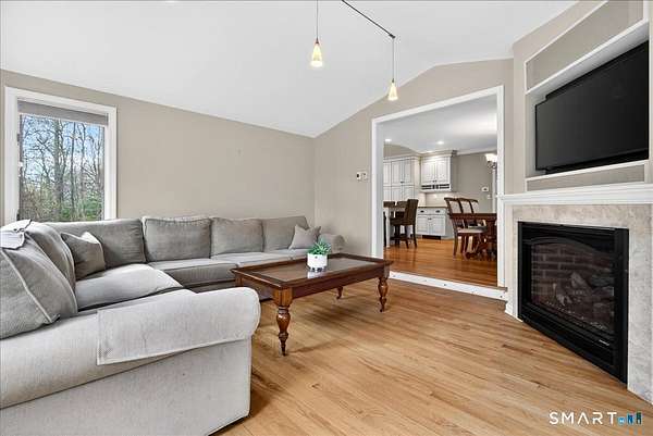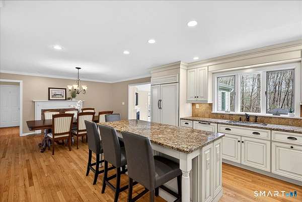Welcome to a beautiful Cape Cod-Contemporary retreat that perfectly blends modern updates with a comfortable, inviting atmosphere. The heart of this home is the stunning chef's kitchen, featuring a large center island with seating for 4, professional gas cooking, high-end appliances, and an incredible amount of pantry and storage space. It flows naturally into the dining room, where a cozy gas fireplace makes the space perfect for hosting everything from holiday dinners to casual weeknight meals. Relax in the living room or head to the family room to enjoy a second gas fireplace and walls of windows that bring the beauty of the private backyard inside. Walk in from your 2 car garage to a mudroom space complete with half bath and dedicated laundry room. The floor plan is designed for easy living, highlighted by a main-level primary suite complete with two walk-in closets with great organization systems and a spacious bathroom featuring double sinks and a beautifully tiled shower. Upstairs, you'll find two oversized bedrooms, both with their own walk-in closets, and a full guest bath. The finished lower level offers additional living space with a bonus room, private office and half bath. There is an abundance of storage in the lower level and throughout the home. Outside, the large AZEK deck leads to a heated in-ground pool, creating a private summer oasis.