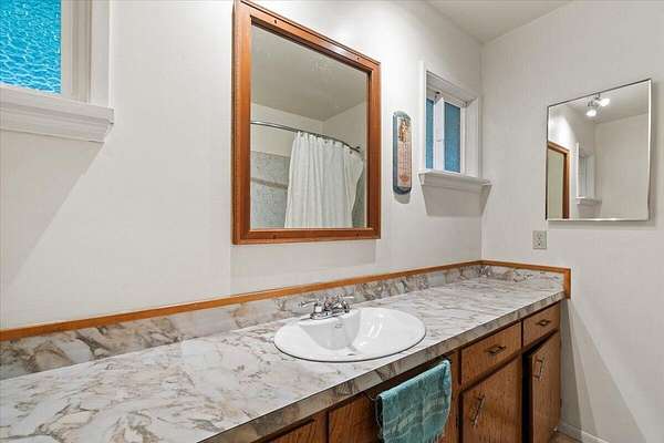 From Main Street, turn up Monument Road and take a left on Redwood Ave by sign that reads ''Right to Pass Subject to Permission'' Continue down road and cross bridge. Stay to the right, house will be the first one on the right behind fence.