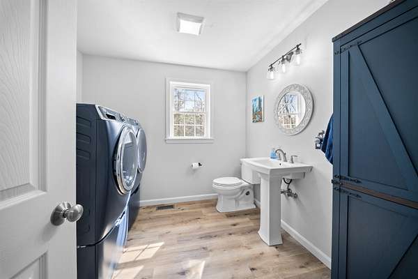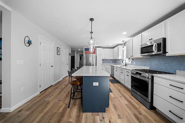 Welcome to 50 Ridge Road in "low tax" Alton, offering the feel of new construction without the new construction price tag. Built in 2022, this well-designed 3-bedroom, 2.5-bath home combines modern finishes, flexible living space, and beautiful views of the Belknap Mountain Range. Enter through the attached two-car garage into an oversized mudroom—perfect for keeping everyday life organized. The spacious kitchen is the heart of the home, featuring an extended island, stainless steel appliances, quartz countertops, and ample storage. The open-concept layout flows seamlessly into the dining and living areas, creating a bright and inviting space ideal for both entertaining and daily living. A versatile flex room on the first floor can serve as a home office, second family room, or be closed off to create a first-floor bedroom. First-floor laundry adds extra convenience and completes the main level. The home was thoughtfully designed with the potential for future expansion, with 20 feet available to easily add an addition off the living room if more space is ever desired. Upstairs, the spacious primary suite offers a comfortable retreat with a walk-in closet and private en suite bath. Two additional generously sized bedrooms and another full bath are located down the hall. Both upstairs bathrooms feature double vanities and elegant marble countertops. The full walkout basement provides excellent potential for additional finished space or storage. A dedicated chimney flue is already installed, making it easy to add a wood or pellet stove and bring the space to life. The home also includes a full-house 9,000 kW generator with transfer switch, with the exterior inlet conveniently located near the basement walkout. Outside, you’ll find a 50-amp RV outlet and a 10x20 Reed’s Ferry Shed for additional storage. Located just 3 miles from Downings Landing for boat access to Lake Winnipesaukee, this home offers an exceptional blend of value, comfort, and location.