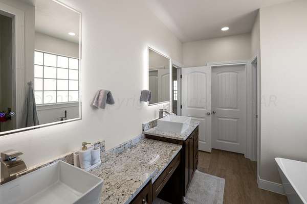 Modern Country Living in Bushland - 4 Bed, 3.5 Bath on 1.56 Acres. Welcome to your dream home in the heart of Bushland, TX! Built in 2023, this stunning 4-bedroom, 3.5-bath home offers thoughtfully designed living space, all set on a generous 1.56-acre lot-perfect for enjoying wide-open spaces with room to breathe. Step inside and you'll find beautiful wood flooring, a cozy stone fireplace, and an open layout that seamlessly connects the living room, formal dining room, and spacious breakfast area-ideal for entertaining or relaxing with family. The kitchen and bathrooms are appointed with granite countertops throughout, and the primary suite boasts a luxurious double vanity for added convenience. The Kitchen is well planned out with spacious countertops. Additional highlights include ceiling fans in every room, a unique driveway that adds curb appeal, and a 2-car garage offering plenty of storage. With both style and comfort in mind, this modern home combines upscale finishes with a peaceful, country feeljust minutes from city amenities. Don't miss your chance to own a like-new home in the highly desirable Bushland area!