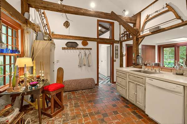 Cottage, Guest House & Buildable Lot Exceptional estate opportunity in pastoral Southern Roxbury, just 90 minutes from New York City. Set on 8.71 acres, the property features a historic c.1817 three-bedroom antique cape-featured in Elle Decor-a charming two-bedroom guest house, and a separate 6.71-acre buildable lot with potential for a spacious custom home at the end of a long, private driveway. The main residence exudes rustic character, with original hand-hewn beams, wide-plank oak floors, a wood-burning fireplace, and classic plaster walls. At its heart is a spacious eat-in kitchen, flanked by a formal dining room and library on one side, and a sunlit living room wrapped in windows on the other. The 658 square-foot guest house overlooks the spring-fed pond and includes a generous living room, two bedrooms, and a full bath-serviced by its own septic. The grounds are serene and beautifully landscaped, with a cantilevered "waterfront" sun deck, mature trees, lush gardens, and gently rolling lawn. Whether you envision building a bespoke estate or simply enjoying the charm and privacy of the existing homes, this rare offering blends history, potential, and natural beauty in one of Litchfield County's most coveted locations.