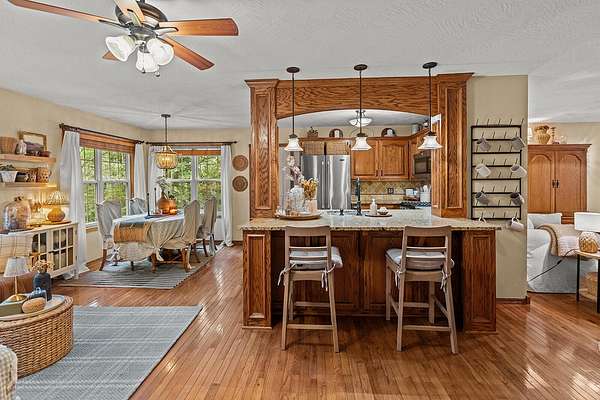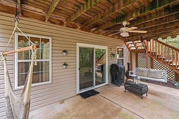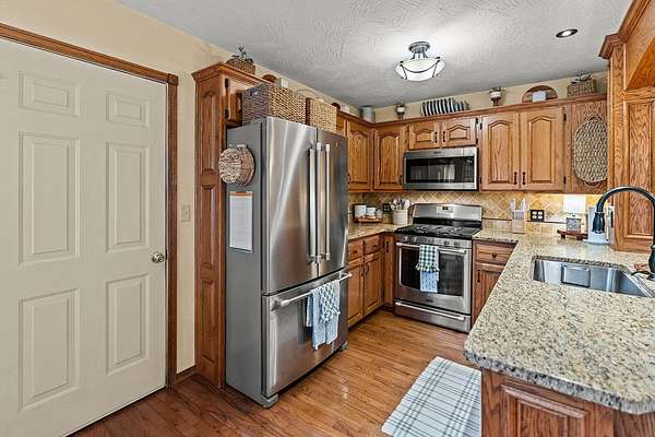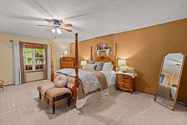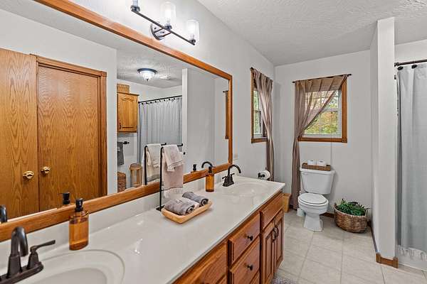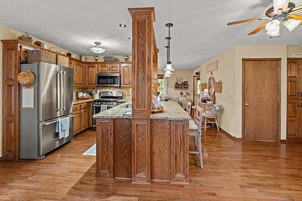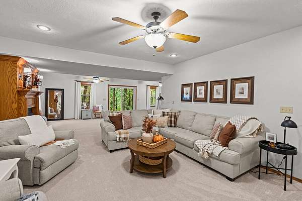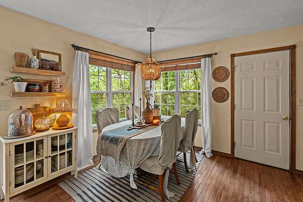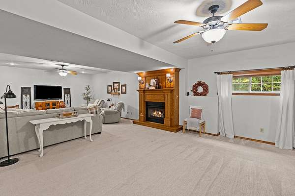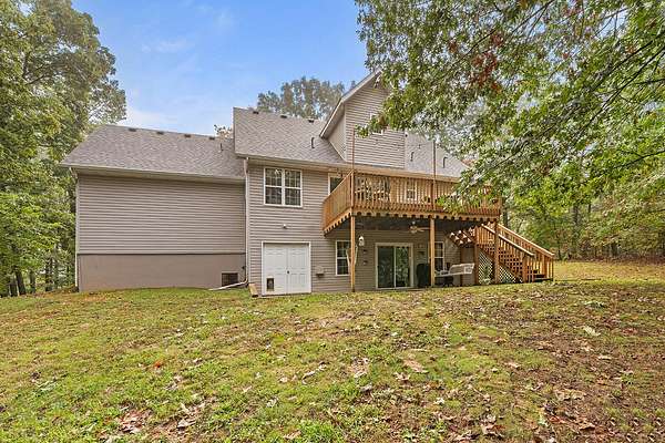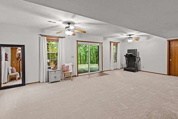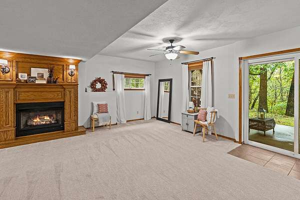 Tucked away in a peaceful, secluded setting, this immaculate, move-in ready two-story plus walkout basement home offers the perfect blend of privacy, comfort, and space. With 3 large bedrooms, 3.5 bathrooms, and two spacious living areas, there's room for everyone to relax, grow, and thrive. Enjoy morning coffee on the covered front porch or expansive back deck while watching deer and wildlife roam the 6+ mostly wooded acres. Just a short walk away, a wet weather creek adds to the property's natural charm. The interior features granite kitchen countertops, stainless steel appliances, a gas range, custom backsplash, and beautiful custom woodwork. Bathrooms are finished with cultured marble vanities, and floors throughout are a mix of hardwood, tile, and BRAND NEW carpet throughout. A vent-free gas fireplace adds cozy warmth to the basement living space. The exterior is just as impressive - Professionally landscaped with a blooming dogwood tree, garden area, and a magical bonfire space lit by fairy lights, perfect for evening gatherings under the stars. Recent updates include a new roof (2023), new gutters with leaf guards, brand new carpets throughout, a freshly painted basement and numerous efficiency upgrades: high-efficiency gas furnace, electric furnace, zoned A/C units, electric water heater, whole-house humidifier, water softener, and is supported by a private well. Additional features include a John Deere room, storage building, and an oversized two-car garage for your toys and tools. The home is wired for a hot tub and ready for your personal touch. Whether you're starting a family, entertaining guests, or seeking a peaceful retreat, this immaculate, private haven offers timeless comfort and room to grow. Schedule your private showing today!