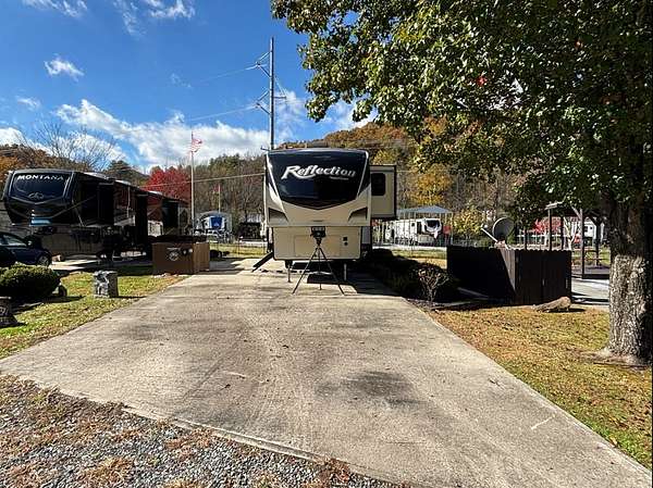 From the Dillsboro traffic light on US-441, Head south on US-441S toward Franklin (4.2 mi) Turn left onto Timber Leaf Dr and take an immediate right into the RV park, stay left to go clockwise through the loop. Lot will be on your right.