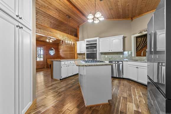 REDUCED PRICE! Escape to your private retreat with this breathtaking 4,200 sq. ft. cabin nestled on 16.11 gated acres of serene countryside. Offering unparalleled panoramic views of the valley, this property is a perfect blend of rustic charm and modern comfort with wrap around porches overlooking the fabulous valley view. Inside, you'll find 4 spacious bedrooms, 4 baths, and two inviting living areas, ideal for entertaining or cozy evenings by the fire. A guest quarters is also present with a mini kitchen, living room, bedroom & full bath. The open-concept design showcases warm wood finishes, soaring ceilings, and expansive windows that bring the beauty of nature indoors. Step outside and embrace the great outdoors--whether it's fishing in the private pond, watching abundant wildlife roam, or utilizing the large barn for storage, livestock, or hobbies. With a secure gated entrance, privacy and tranquility are yours to enjoy. This one-of-a-kind property offers the perfect balance of seclusion and convenience--ideal for a full-time residence, vacation getaway, or investment retreat. Don't miss out on this incredible mountain escape! Schedule your private showing today.