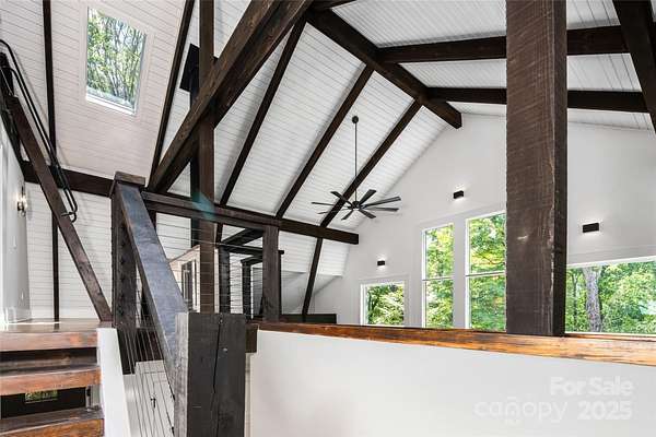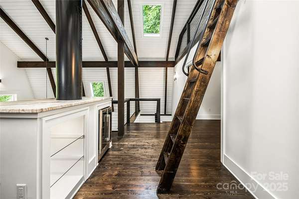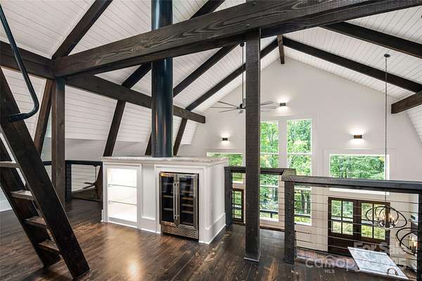 Welcome to your picture-perfect mountain oasis-an extraordinary residence that has undergone a down-to-the-studs luxury renovation, where every detail has been thoughtfully reimagined to the highest standard. Tucked among the trees offering a rare blend of refined design, modern comfort & serene, treehouse-like privacy just minutes from the heart of Burnsville. A dramatic open living space showcases a 300+ sqft expansion, soaring 30-ft ceilings & walls of windows that flood the home w/natural light & lush treehouse-like views from every vantage point. An open, flowing layout is anchored by the finest finishes throughout, creating an atmosphere that is both grand & inviting. At the heart of the home is a bespoke entertainer's kitchen featuring extensive custom cabinetry & an oversized island that easily seats 6+. Premium matte white GE Cafe appliances include electric induction cooktop w/pot filler, French-door refrigerator, apron-front sink, double ovens, microwave drawer, dishwasher, disposal & striking custom pendant lighting-an ideal setting for both everyday living & elevated entertaining. Kitchen opens seamlessly into the sprawling GR, highlighted by a new wood-burning FP w/an impressive 18-ft stacked-stone surround, expansive firebox, rustic mantel w/artisan-crafted iron brackets & granite raised hearth. Fully appointed wet bar enhances the space w/custom cabinetry (including glass-front uppers), granite countertops, premium hardware, undermount stainless sink & dual wine refrigerators. Adjacent to the GR, newly added den/dining/seating rm features vaulted ceiling & 2nd FP w/shiplap surround, rustic mantel, iron brackets & granite hearth-perfect for intimate gatherings or relaxed evenings by the fire. 2 primary ensuite BRs, one on main level (fully wheelchair accessible) & one on upper level, each featuring elegant electric FPs w/shiplap surrounds & rustic mantels. 2 additional spacious guest BRs located on LL. 3.5 spa-inspired BAs boast custom marble & ceramic tilework, w/heated floors in 2 BAs. Both primary suites include large closets w/custom organizer systems & luxurious BAs w/double vanities & glass-enclosed tiled showers; main-level primary also features a bubble-jet soaking tub. Adding to the home's versatility are 2 loft spaces. 2nd-level loft, just outside the upper primary suite, includes a granite-topped dry bar w/beverage/wine refrigerator, lighted glass shelving & lounge area. 3rd-floor loft-accessed by a tuck-away ladder-offers exceptional flex space for sleeping, office, or creative retreat, complete w/operational skylights, new windows & wall sconces. Thoughtful up-lighting along ceiling beams gently washes ceilings, creating a warm & inviting evening ambiance throughout. LL features 2 Guest BRs, a beautifully designed shared BA w/heated floors, glass shower enclosure, dual ceiling-mounted rain shower heads, handheld wands, new transom window & double vanity. LL includes multiple storage closets, wine rm w/custom wall-wash lighting (easily convertible to a media rm, home gym, or workshop), utility closet w/water filtration & softening systems & an attached garage. Multiple access points lead to a covered patio w/FP, including direct access from one of the BRs. Outdoor living is equally impressive w/a brand-new firepit & grilling area, exterior driveway & peaceful, private setting ideal for entertaining or unwinding beneath the stars. Additional highlights include new interior & exterior paint, new roof, new gutters w/gutter guards, extensive electrical & plumbing updates, new hybrid hot water tank, newer HVAC, new well & pressure pumps & fully serviced septic system (4-BR permit on file). Ideally located just 5 minutes from downtown Burnsville & Toe River Arts & only 35 minutes from Asheville, this exceptional property offers luxury, privacy & convenience-with no HOA fees & no hurricane damage. A truly remarkable mountain retreat where craftsmanship, comfort & setting come together in perfect harmony.