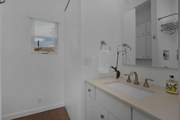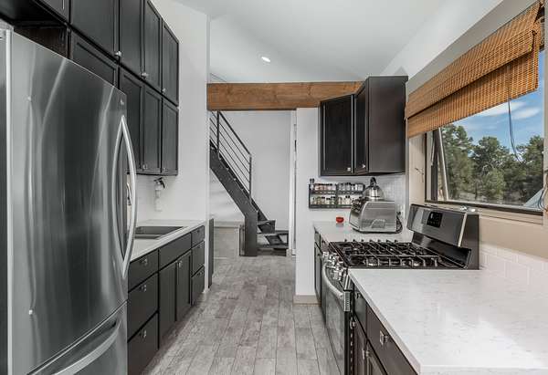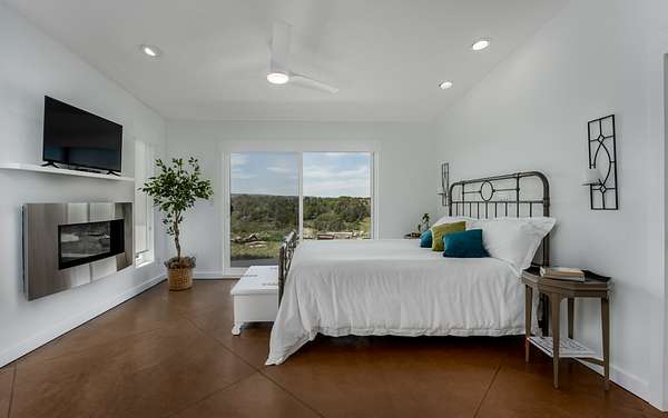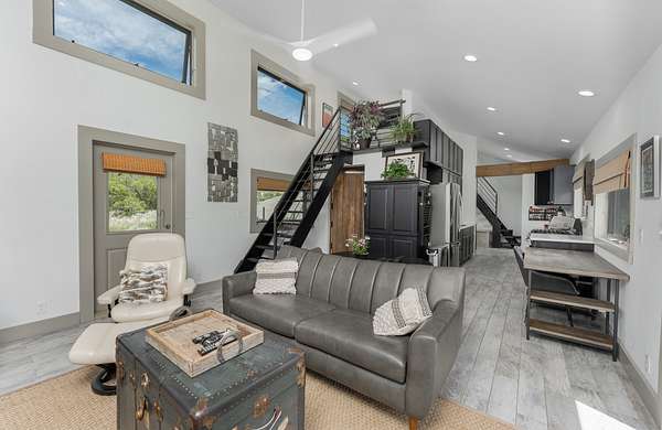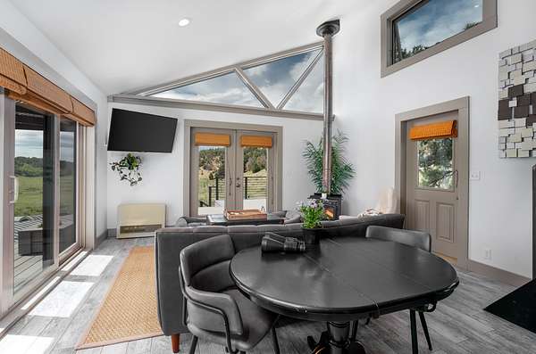The main house boasts a chef's kitchen with top-of-the-line LG appliances, in-floor radiant heating, and a welcoming living area with a Nectre wood-burning stove. The guest house, constructed in 2017, promotes sustainable, grid-tied living with solar panels, a propane generator, and all necessary modern amenities.