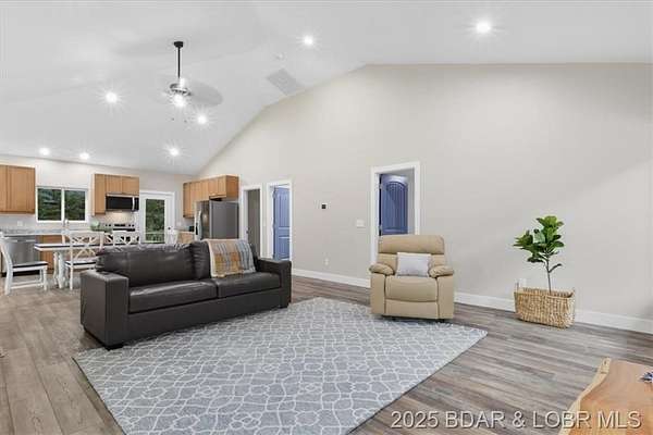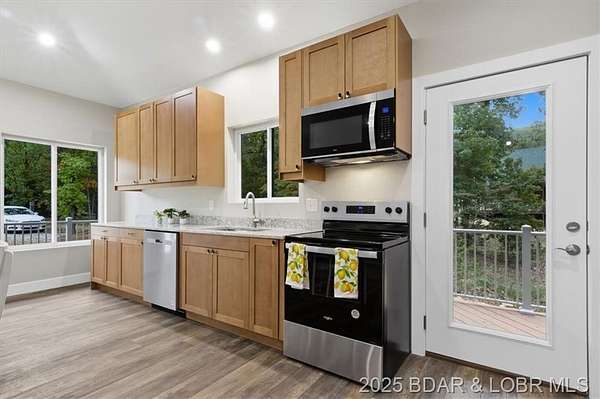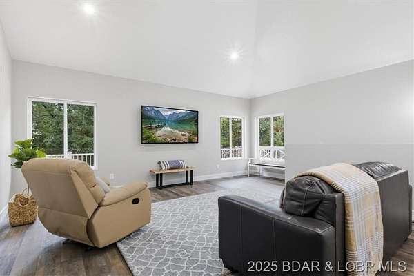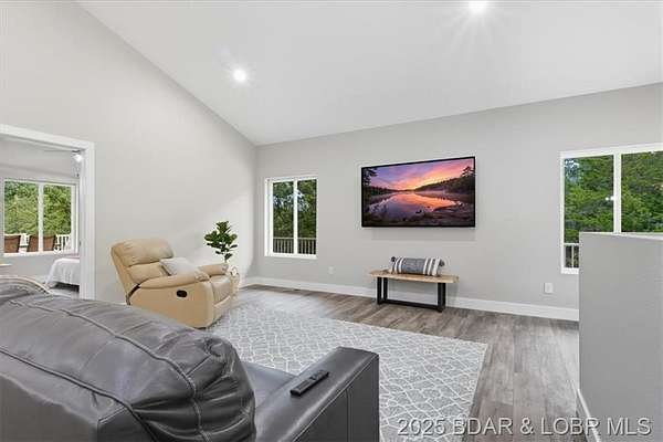 New Construction 4 Bed, 3 Bath on 5 Acres! It's rare that privacy, luxury, and convenience all cross paths but this gorgeous new home offers that and more! From a wrap around deck to an open concept floor plan--this is a must see. The main level features vaulted ceilings, plenty of kitchen counter space, the owner's ensuite, another bedroom and full bath. Downstairs offers a second living room area, two bedrooms, third full bathroom, and laundry. Outdoor entertaining space is of no shortage here! With a huge main level deck and lower level covered patio, there is tons of room for family and friends! Offering plenty of flat parking and tons or room to build a shop or garage! Relax in the surrounding of nature and wildlife in such a convenient location! Next door to Old Kinderhook Golf, down the road from Ball Parks National, and just 5 minutes from Camdenton square! Enjoy top of the line amenities: brand new clubhouse with heated indoor and outdoor pools, fitness center, day spa, plus pickleball courts, maintained streets, and more! Furniture, Appliances, Hot Tub are INCLUDED!!! (road will be asphalted after construction)