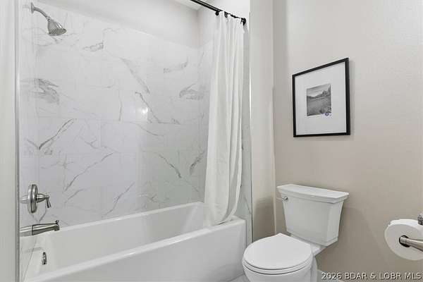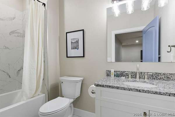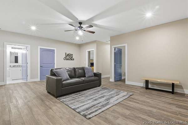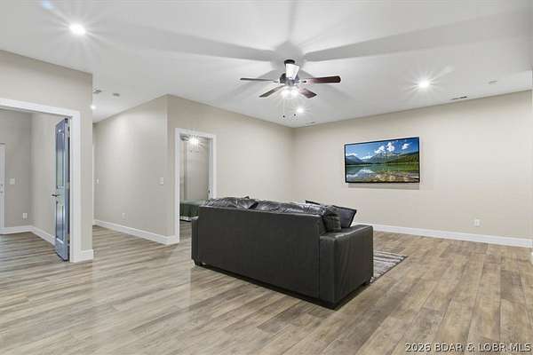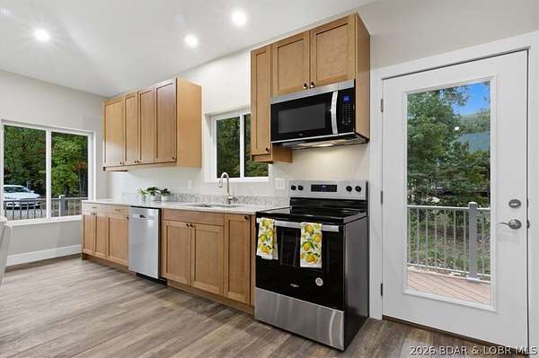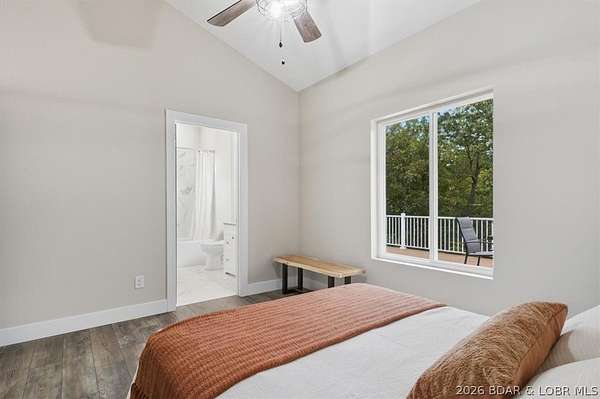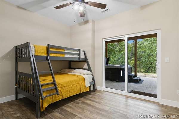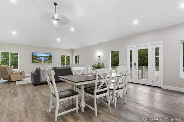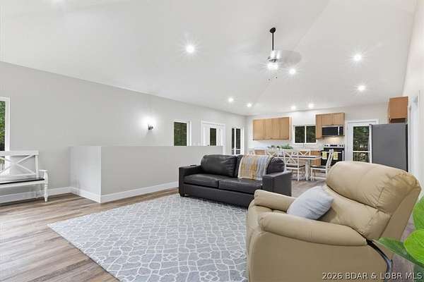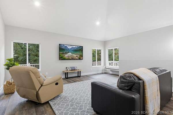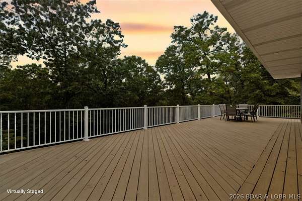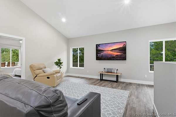 New construction, acreage, gated entry, and resort-style amenities - this one checks all the boxes! Located on 5 private acres in a luxury community next to Old Kinderhook, this 4-bedroom, 3-bath home offers flexibility for full-time living, a second home, or a short-term rental investment (other homes have a great nightly rental record!). The open-concept main level features vaulted ceilings, spacious kitchen counter area, the owner's suite and bath, a second bedroom plus full bath. The lower level adds a second living space, two additional bedrooms, a third full bath, and laundry. Outdoor living is a standout with the large wraparound deck and covered lower patio with hot tub included, perfect for entertaining and enjoying the surrounding nature and wildlife! Flat parking plus a detached 2-car garage coming soon. Community amenities include a new clubhouse, indoor and outdoor heated pools, fitness center, spa, pickleball courts, and maintained streets. Just minutes to Camdenton square, Ballparks National, golf course, on & off water restaurants, and more! Furniture, appliances, golf cart, and hot tub included!!! (Road will be asphalted after construction.)