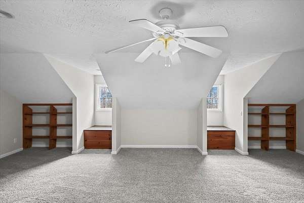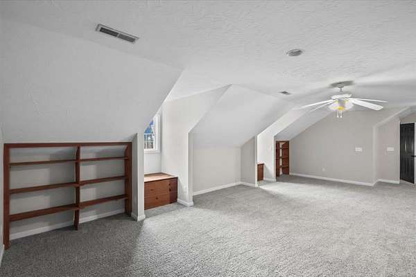 - Attic Storage, Bookshelves, Ceiling Fan(s), Chandeliers