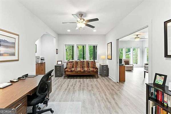 Welcome to your mountain oasis nestled in the sought-after Fisher Creek Estates, featuring a custom-built, spacious, modern ranch on nearly 5 acres of lush rolling landscape. Peaceful mountain views and gorgeous sunsets await you on your covered front and back porches perfect for relaxing and entertaining. Enjoy main floor living that boasts both master and guest suites with custom cabinetry, walk in closets, plentiful natural light and scenic views. Convenience is at your fingertips with a main floor full laundry complete with cabinetry, spacious linen closet and laundry sink. At the heart of the open concept home you will find a chef-inspired kitchen featuring beautiful custom-built hardwood cabinetry with soft close drawers, a large island with extra storage, double pantry and modern finishes that will delight any cook. Looking for a place to work or craft? Then you will love the large executive office space with natural light and privacy doors that can double as an additional bedroom or a play space off the main living area. Want to expand your living area to include more bedrooms or recreation space? Then the large second-floor bonus room is ready to fulfill your vision with its gorgeous panoramic views, generous square footage (enough to accommodate 2 additional bedrooms), vaulted ceiling, and bonus powder room. Still want more space? A third attached garage bay is perfect for all your recreational interests featuring ample space for storage, a shop or home gym in addition to parking for a full-size vehicle or recreational vehicles. Beyond the home, is the backdrop of your own serene woodlands perfect for private trails, man cave/she- shed, pavilion or even an additional residence with secondary road access providing you the room to create your perfect North Georgia retreat less than 2 hours from the heart of Atlanta. This property is a rare combination of privacy, convenience, comfort, and modern elegance, all located in the amazing town of Talking Rock, Georgia; a quaint, historic town nestled in Pickens County, known for its peaceful atmosphere, scenic beauty, and rich cultural heritage. Talking Rock's charming attractions offer a small town relaxing atmosphere and strong sense of community. Stroll through the well preserved historic district, reflecting the town's 19th-century roots. Plenty to explore at Talking Rock Nature Park, perfect for hiking, birdwatching and communing with nature. Celebrate Talking Rock's past, present and future every October with the Heritage Days Festival, a beloved local tradition featuring crafts, food, music, and historical displays. Relax and unwind at one of the area's wineries and vineyards offering tastings, dining, and live music. Enjoy fall entertainment, fresh apples and baked goods at area orchards. However you want to spend your time, this mountain town with its unique name and welcoming Appalachian charm are perfect for your weekend getaway or dream retreat.